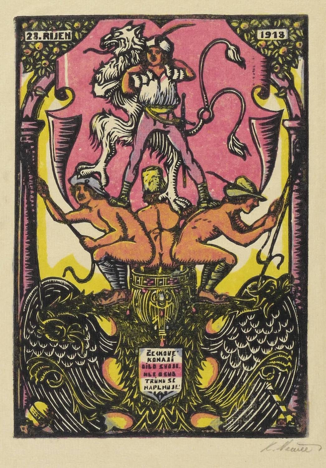 Němec, Karel. – Wappenbild. – „28. Rijen 1918. Gründung der Tschechoslowakei”.