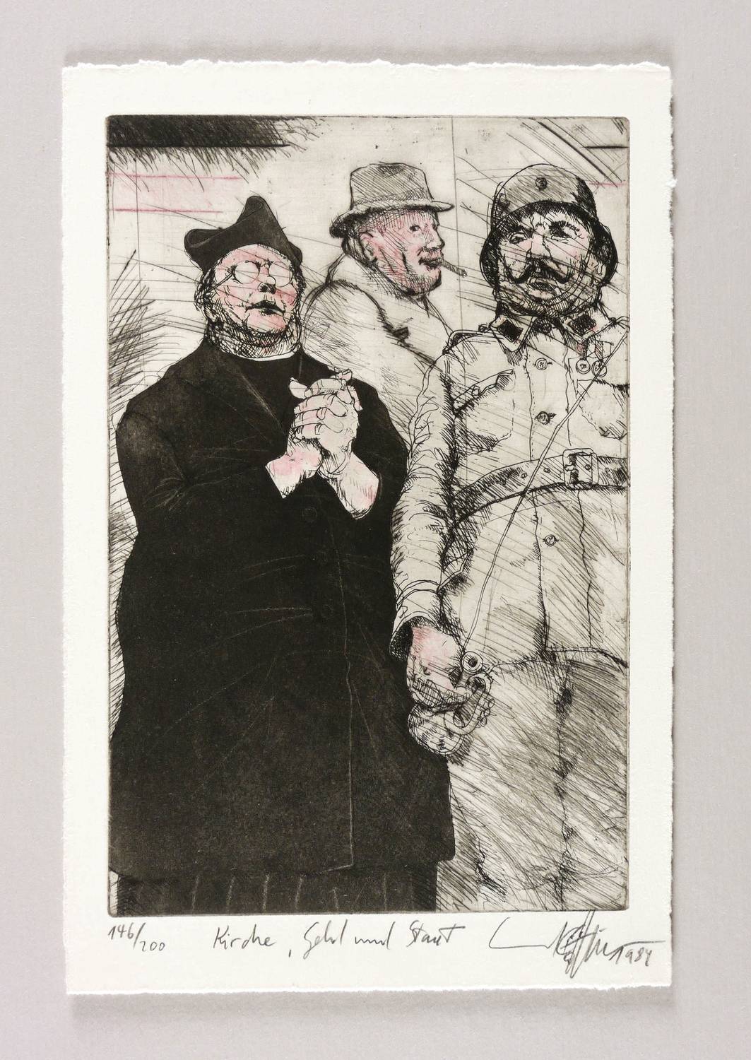 1984. Farbradierung / Strichätzung & Kaltnadel, in Rot & Schwarz, mit leichtem Plattenton, auf Velin. – Originale Künstlergrafik, von Erhard Göttlicher. – Auflage Exemplar Nr. 146/200. – 20,5 x 13,4 cm (Darstellung / Platte), 24 x 16 cm (Blatt).