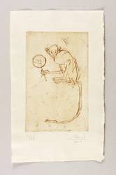 2008. Radierung / Kaltnadel, in Sepia, auf feinem gelbem Bütten. – Originale Künstlergrafik, von Hans Scheib. – Auflage Exemplar Nr. 21/50. – 19,5 x 12,2 cm (Darstellung / Platte), 30 x 18 cm (Blatt).