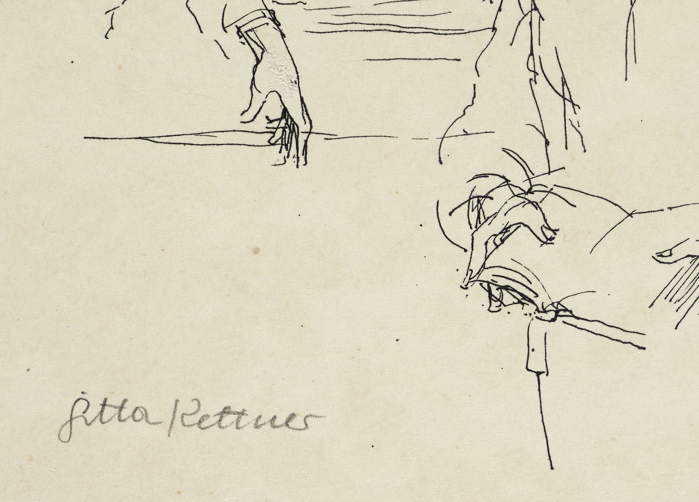 Links unten in Bleistift signiert: ″Gitta Kettner″. – Blattecke links unten minimal gestaucht. Unmerklicher Lichtrand. Verso leichte Montagespuren. Insgesamt guter Zustand.