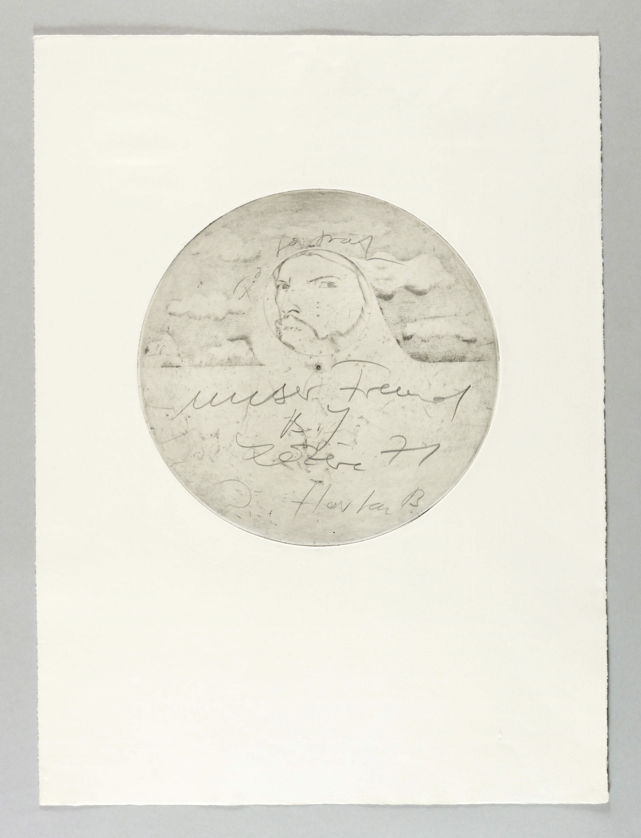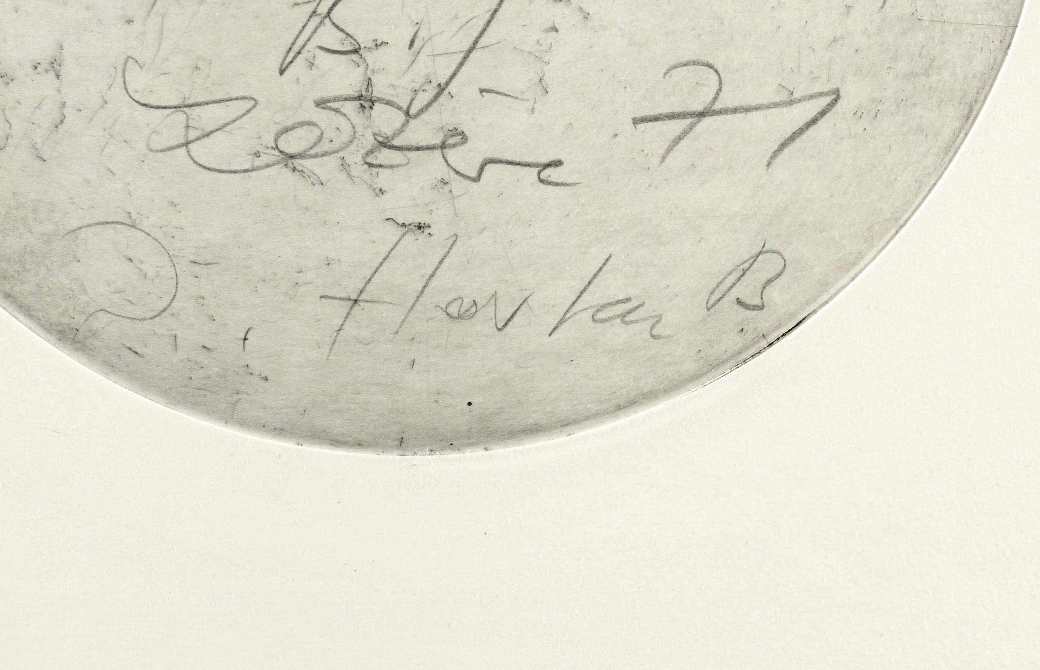 1971. Radierung / Strichätzung, in Schwarz, auf Velinkarton. – Von Dörte Harten. – 24,8 x cm (Darstellung / Durchmesser), 53 x 40 cm (Blatt).