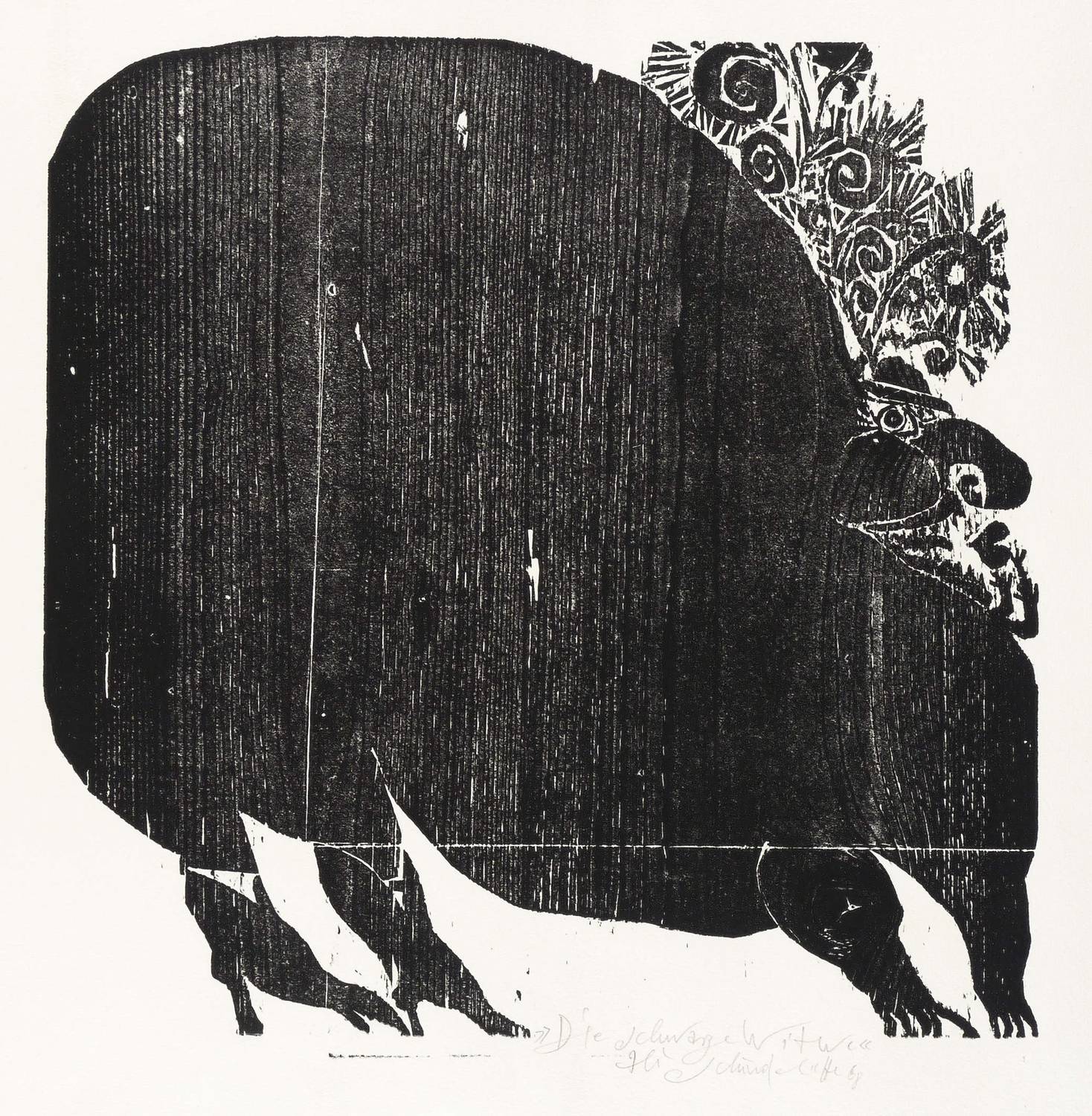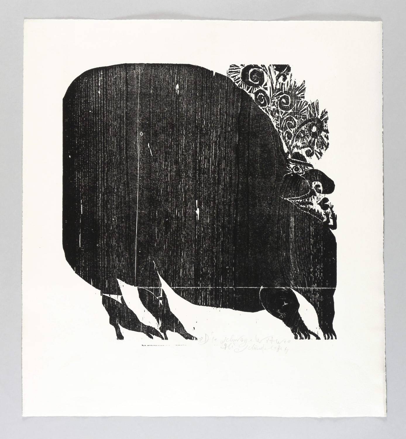 1968. Holzschnitt, in Schwarz, auf hellchamois Bütten. – Originale Künstlergrafik, von Albert Schindehütte. – 37,7 x 37,0 cm (Darstellung / Druckbild), 54 x 49 cm (Blatt).