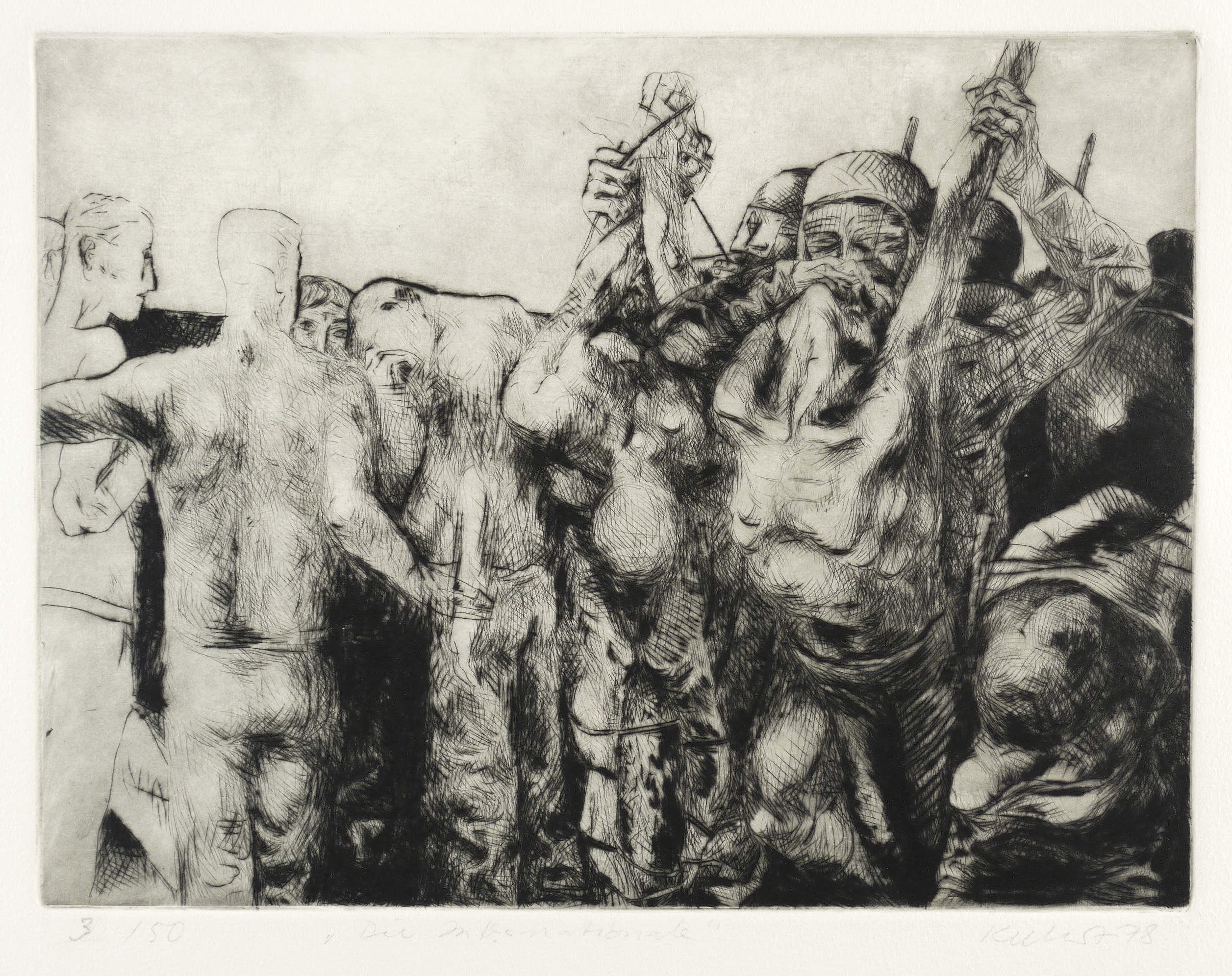 1978. Radierung / Strichätzung & Kaltnadel, in Schwarz, mit Plattenton, auf Hahnemühle-Bütten. – Von Rolf Kuhrt. – Auflage Exemplar Nr. 3/50. – 24,8 x 32,7 cm (Darstellung / Platte), 34 x 48 cm (Blatt).