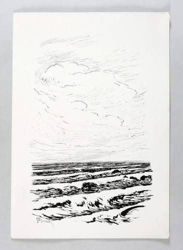 In der Darstellung links unten in Feder und Tusche signiert: ″PGroß″. – Aus einer Zeichnungs-Serie des Künstlers, die 1920 in verschiedenen Badeorten entlang der Ostseeküste zwischen Swinemünde und der Insel Rügen entstand. – Unbeschnittenes Exemplar. Papier mit minimalen Altersspuren. Verso am oberen Rand ältere Montagereste. Insgesamt sehr guter Zustand.