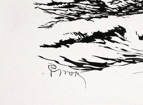 1920. Zeichnung / Federzeichnung, in schwarzer Tusche, auf glattem weißem Karton. – Originale Künstlergrafik, von Paul Groß. – Unikat. – 28,7 x 18,4 cm (Darstellung), 34 x 24 cm (Blatt).