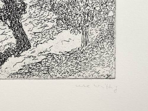 Um 1988. Radierung / Strichätzung, in Schwarz, auf hellchamois Hahnemühle. – Originale Künstlergrafik, von Ute Wittig. – 30,5 x 25,0 cm (Darstellung / Platte), 54 x 40 cm (Blatt).