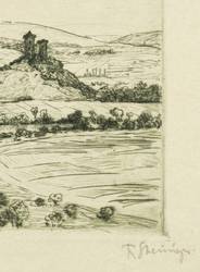 1910-1920. Radierung / Kaltnadel, in Schwarzblau, auf festem gelbem Velin. – Originale Künstlergrafik, von Ferdinand Steiniger. – 9,0 x 11,9 cm (Darstellung / Platte), 18 x 23 cm (Blatt).