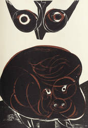 1964. Farbholzschnitt, in Rotbraun & Schwarz, auf hellem Werkdruckpapier. – Originale Künstlergrafik, von HAP Grieshaber. – 43,7 x 30,8 cm (Darstellung), 44 x 31 cm (Blatt).