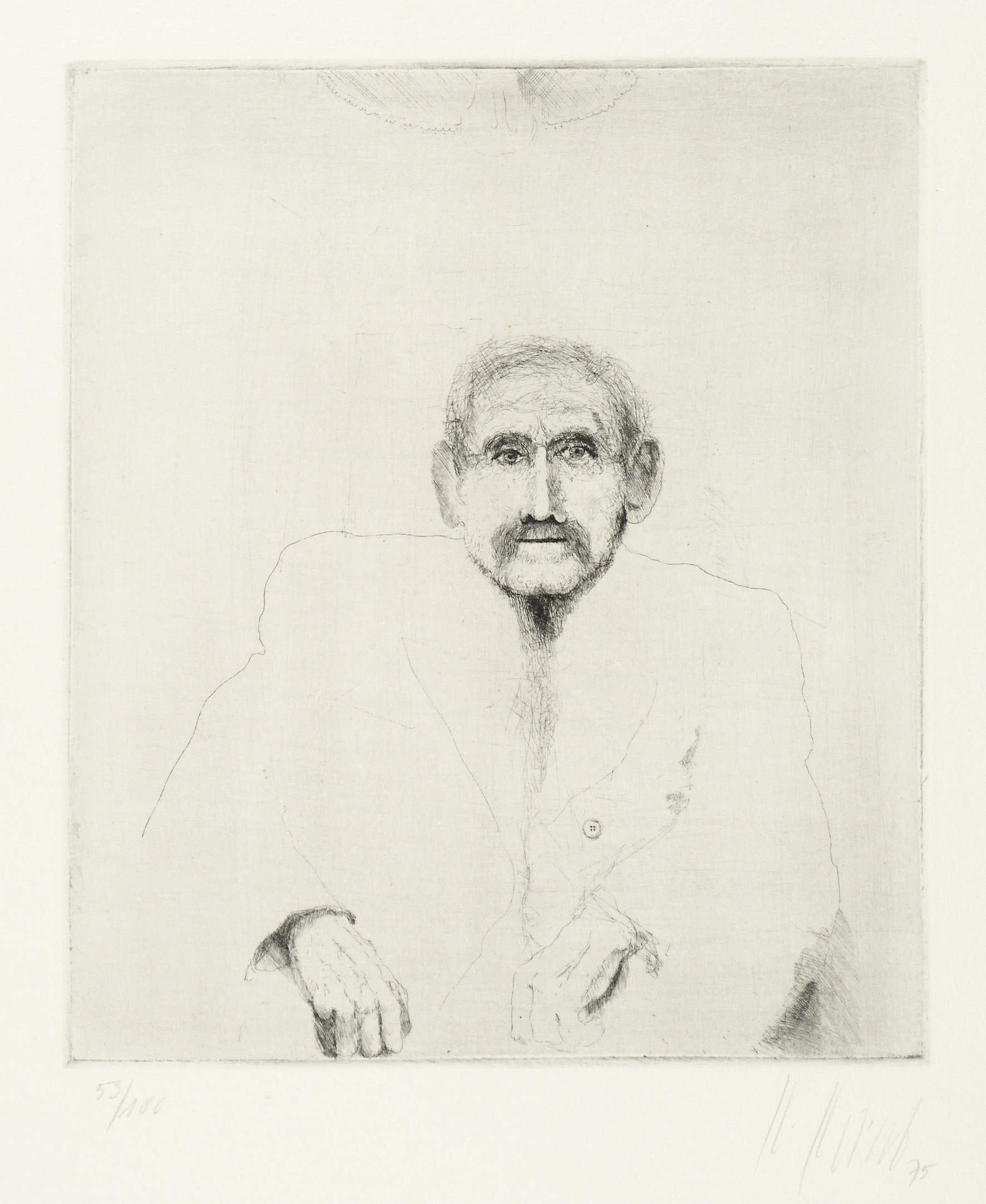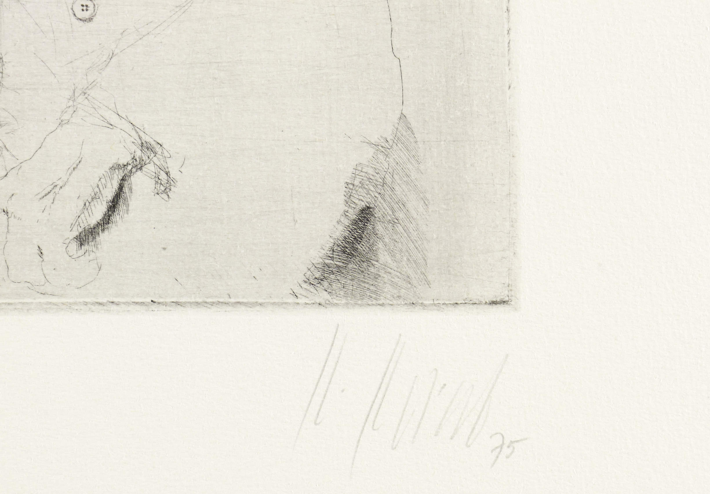 1975. Radierung / Strichätzung, mit zartem Plattenton, in Schwarz, auf schwerem Hahnemühle-Bütten. – Von Karl Korab. – Auflage Exemplar Nr. 53/100. – 27,6 x 23,6 cm (Darstellung / Platte), 53,5 x 39,5 cm (Blatt).