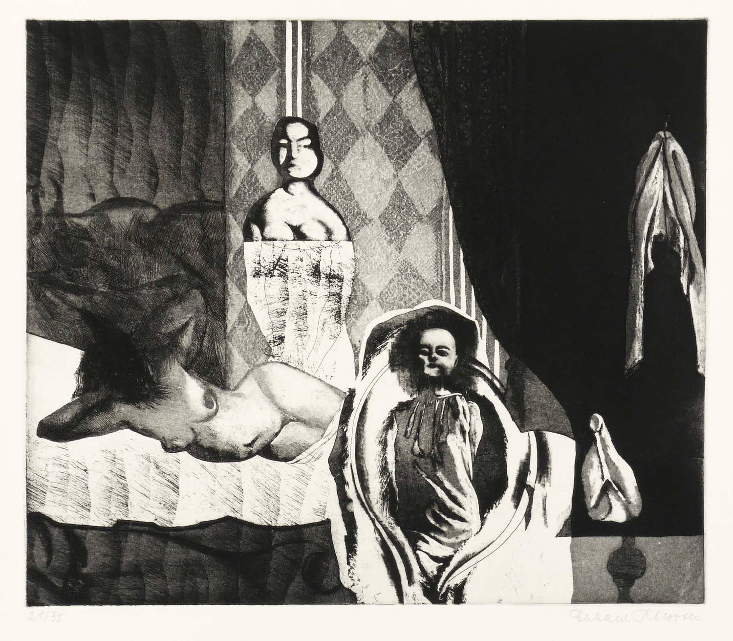 1963. Radierung / Aquatinta & Strichätzung, in Schwarz, auf hellchamois Velinkarton. – Originale Künstlergrafik, von Eberhard Schlotter. – Exemplar Auflage Nr. 21/35. – 33,7 x 39,3 cm (Darstellung / Platte), 49 x 56 cm (Blatt).