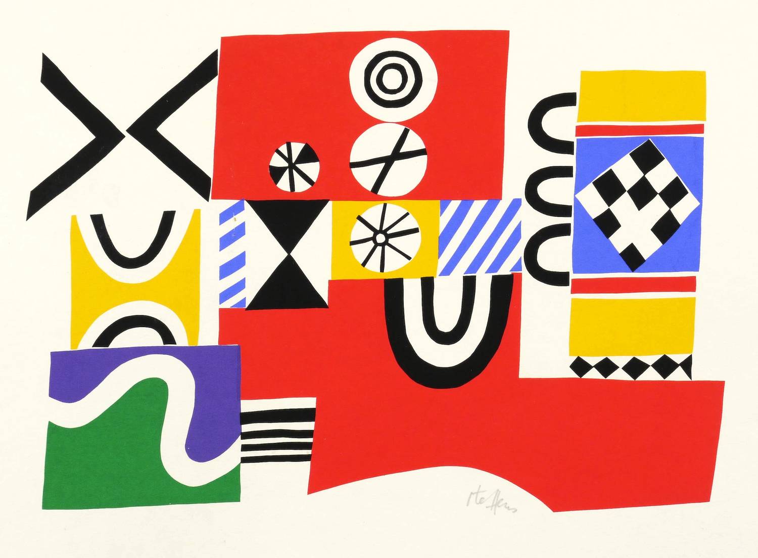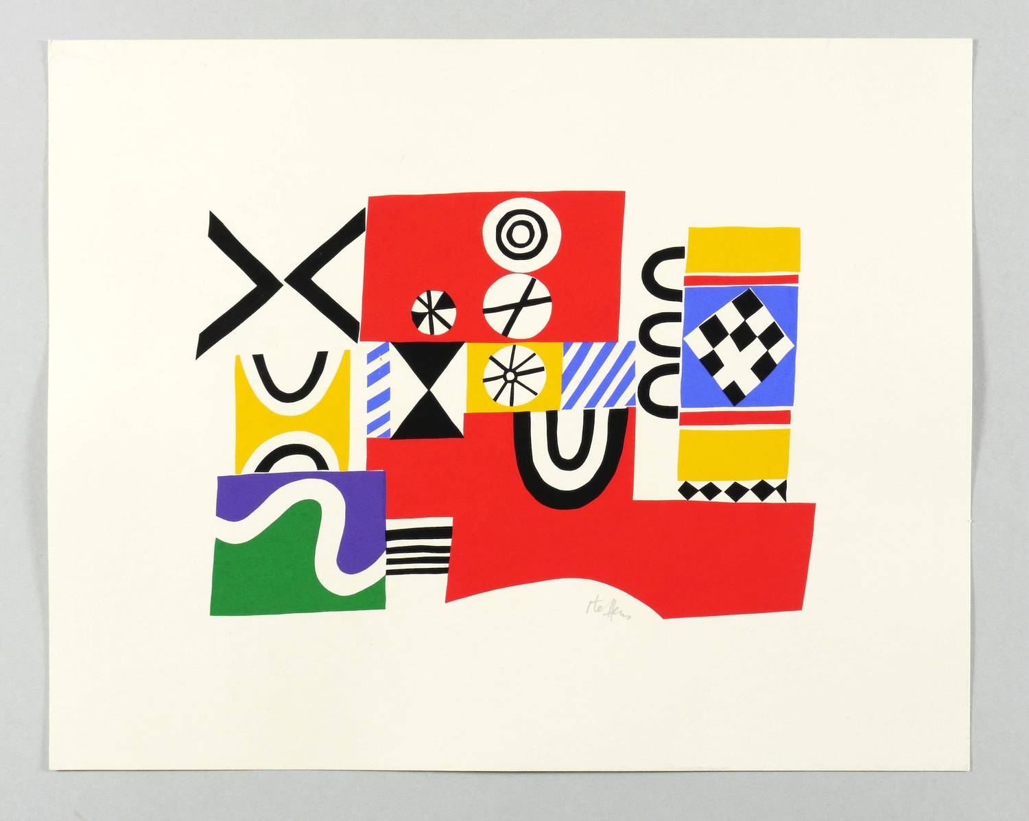Um 1970. Farbsiebdruck / Farbserigrafie, in 6 Farben, auf weißem Karton. – Originale Künstlergrafik, von Hans Hermann Steffens. – 17,5 x 25,5 cm (Darstellung), 30 x 38 cm (Blatt).
