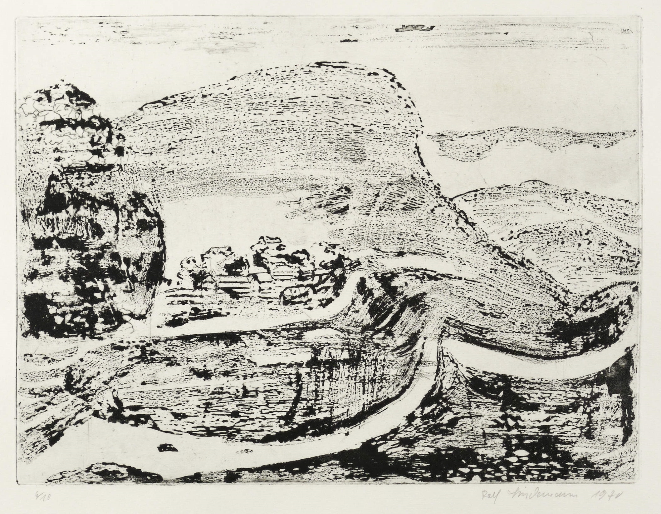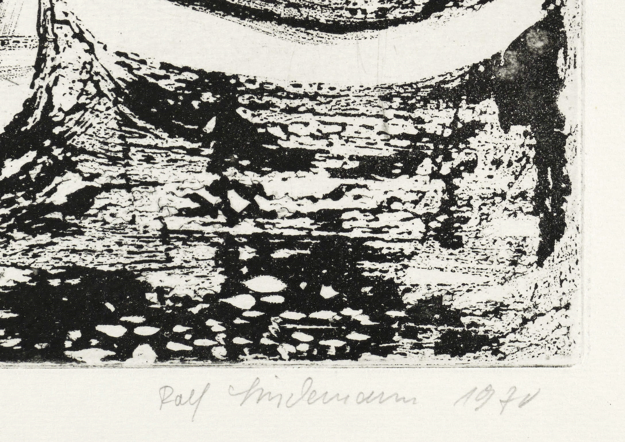 1970. Radierung / Reservage, in Schwarz, auf hellem Velinkarton. – Originale Künstlergrafik, von Rolf Lindemann. – Auflage Exemplar Nr. 6/10. – 27,9 x 37,2 cm (Darstellung / Platte), 38 x 50 cm (Blatt).