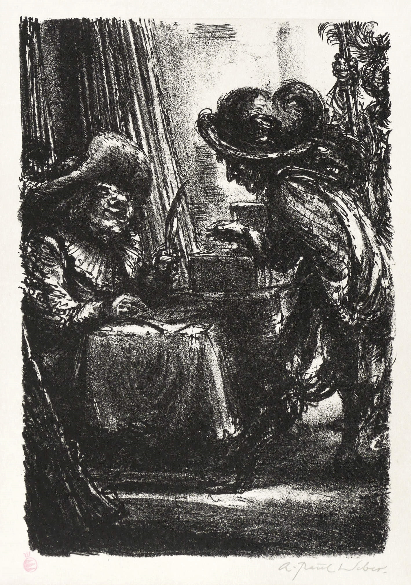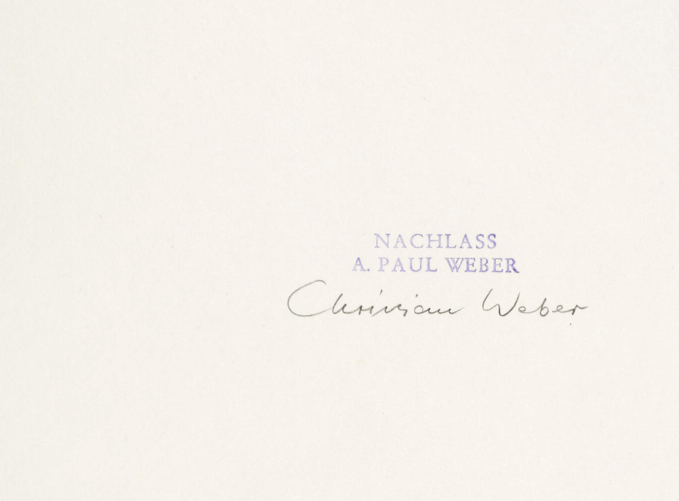 Andreas Paul Weber (1893 Arnstadt - 1980 Schretstaken / Mölln). Oft auch A. Paul Weber. Deutscher Lithograf, Zeichner und Grafiker. Schüler der Kunstgewerbeschule Erfurt. Erste autodidaktische Versuche in Lithografie. Im 1. Weltkrieg Soldat an der Ostfront. 1916 als Zeichner und Karikaturist bei der Zeitschrift der 10. Armee tätig und 1918 nach Spa versetzt. Gehörte dem nationalrevolutionären Kreis um Ernst Niekisch an. Wurde deshalb 1937 ein halbes Jahr inhaftiert. Zeichnete auch antisemitische Karikaturen. 1944/45 wieder Kriegsdienst. Nach 1945 in Schretstaken bei Mölln ansässig. 1971 Großes Verdienstkreuz und Ernennung zum Professor.