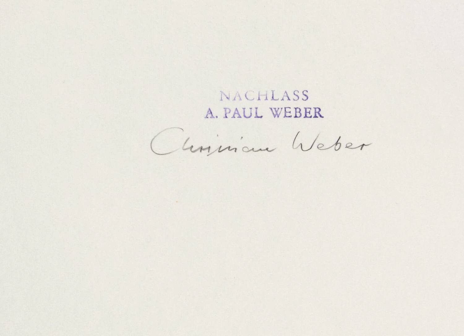 Andreas Paul Weber (1893 Arnstadt - 1980 Schretstaken / Mölln). Oft auch A. Paul Weber. Deutscher Lithograf, Zeichner und Grafiker. Schüler der Kunstgewerbeschule Erfurt. Erste autodidaktische Versuche in Lithografie. Im 1. Weltkrieg Soldat an der Ostfront. 1916 als Zeichner und Karikaturist bei der Zeitschrift der 10. Armee tätig und 1918 nach Spa versetzt. Gehörte dem nationalrevolutionären Kreis um Ernst Niekisch an. Wurde deshalb 1937 ein halbes Jahr inhaftiert. Zeichnete auch antisemitische Karikaturen. 1944/45 wieder Kriegsdienst. Nach 1945 in Schretstaken bei Mölln ansässig. 1971 Großes Verdienstkreuz und Ernennung zum Professor.