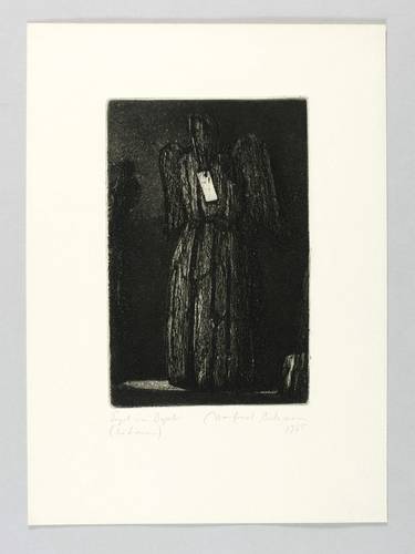 1985. Radierung / Aquatinta & Strichätzung, in Schwarz, auf gelbem Büttenkarton. – Originale Künstlergrafik, von Manfred Butzmann. – 19,7 x 13,0 cm (Darstellung / Platte), 32 x 23 cm (Blatt).