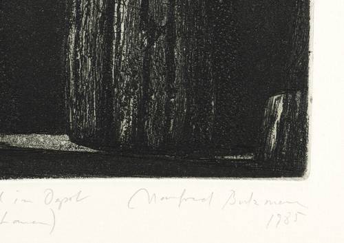 Manfred Butzmann (1942 Potsdam - 2026 Potsdam). Deutscher Grafiker. 1961-64 Ausbildung zum Offsetretuscheur in Berlin und Potsdam. Nebenher Malzirkel von Magnus Zeller in Caputh. 1964-69 Studium der Grafik an der Kunsthochschule Berlin-Weißensee bei Arno Mohr, Werner Klemke und Klaus Wittkugel. Ab 1970 freischaffender Grafiker, zunächst v.a. Buchillustration, später vermehrt Berliner Stadtlandschaften, denen er sich mit besonderem Erfolg widmete. 1973-77 Meisterschüler an der Akademie der Künste Berlin bei Werner Klemke. 1988-93 Gastdozent an der Kunsthochschule Berlin-Weißensee. 1991 Käthe-Kollwitz-Preis der Akademie der Künste Berlin.