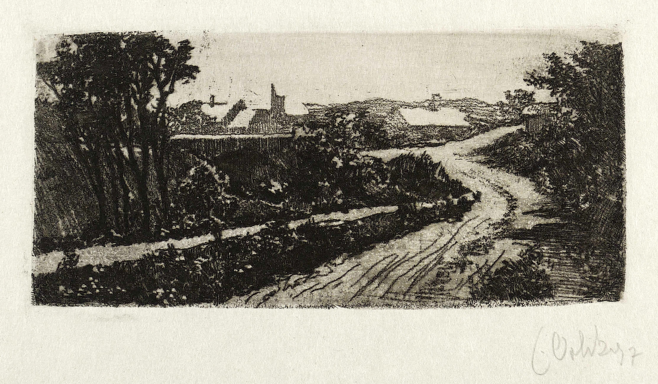Orlik, Emil. – „Weg vor dem Dorf (Landschaft)”.