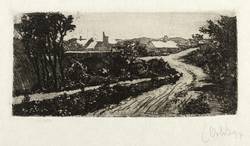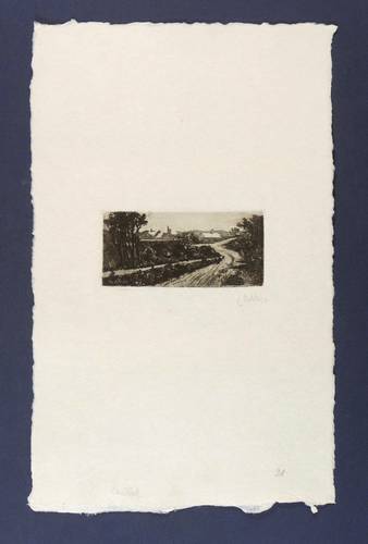 1897. Radierung / Strichätzung & Vernis mou, in Schwarz, auf gelbem Japanbütten. – Originale Künstlergrafik, von Emil Orlik. – 6,2 x 13,1 cm (Darstellung), 6,8 x 13,9 cm (Platte), 39,5 x 24,5 cm (Blatt).