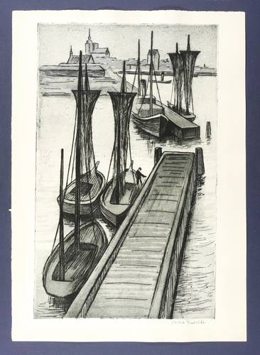 Herbert Tucholski (1896 Konitz / Westpreußen - 1984 Berlin). Deutscher Maler und Grafiker. Ab 1913 Besuch der Kunstgewerbeschule Berlin (Glasmalerei). Teilnahme am Ersten Weltkrieg. Nach 1919 Fortsetzung des Studiums. 1920-25 Studium an der Kunstakademie Dresden bei Max Feldbauer und Ludwig von Hofmann. 1926–28 Hospitant an der Akademie der Künste Berlin. 1929/30 Stipendium für die Villa Romana in Florenz und die Deutsche Akademie in der Villa Massimo in Rom, wo er mit dem Bildhauer Max Wimmer bekannt wurde. 1929-33 Leitung eines Berliner Jugendheimes. Daneben Aquarelle, Pastelle, Federzeichnungen und Holzschnitte. 1933 Anschluss an die Ateliergemeinschaft Klosterstraße; Zusammenarbeit mit Käthe Kollwitz und Hermann Blumenthal. 1939 Rompreis der Deutschen Akademie Villa Massimo. 1957-59 Mentor für Grafik am Institut für bildende Kunst der DDR in Ost-Berlin. 1962-65 Leiter der Zentralen Werkstätte für Grafik. 1964 Professur. Seit 1964 Mitarbeiter der Zeitschrift "Die Weltbühne". 1979 Nationalpreis der DDR II. Klasse für Kunst und Literatur.