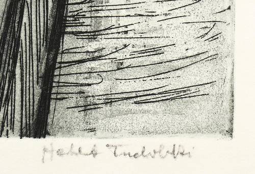 1958. Radierung / Strichätzung & Aquatinta, in Schwarz, über Lithografie, auf Büttenkarton. – Originale Künstlergrafik, von Herbert Tucholski. – 48,5 x 29,8 cm (Darstellung / Platte), 55 x 39 cm (Blatt).