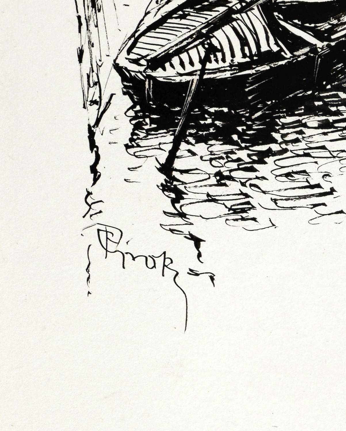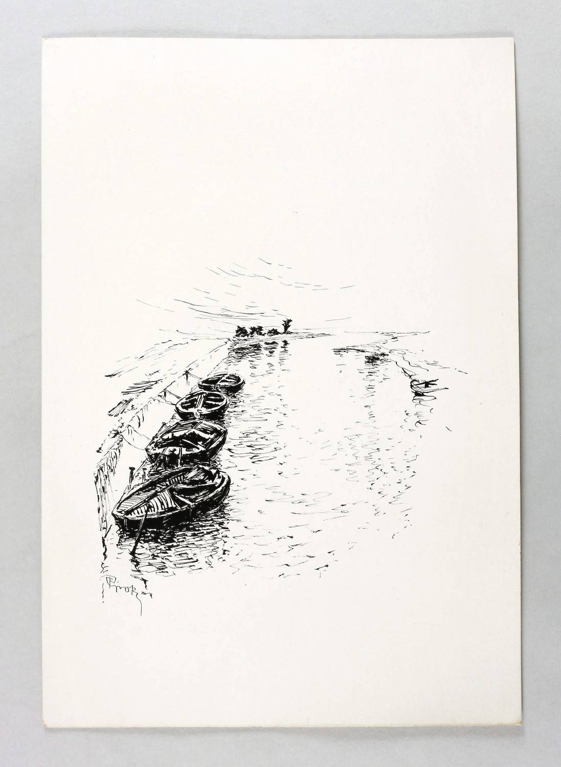 1920. Zeichnung / Federzeichnung, in schwarzer Tusche, auf glattem weißem Karton. – Originale Künstlergrafik, von Paul Groß. – Unikat. – 16,4 x 19,0 cm (Darstellung), 35 x 24 cm (Blatt).