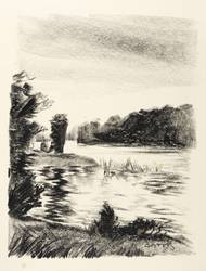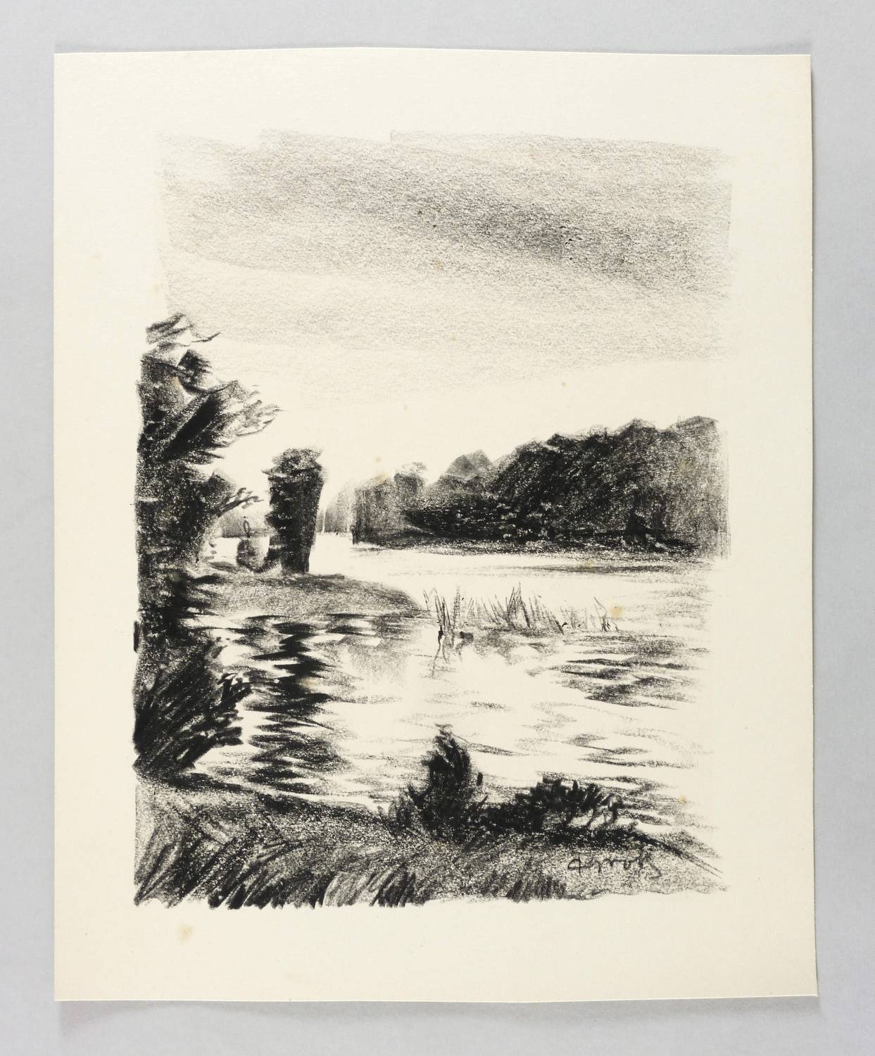 In der Darstellung rechts unten in schwarzer Kreide signiert: ″PGroß″. – Papier mit kleinen Fleckchen. Sonst ohne Mängel. Mäßig guter Zustand.
