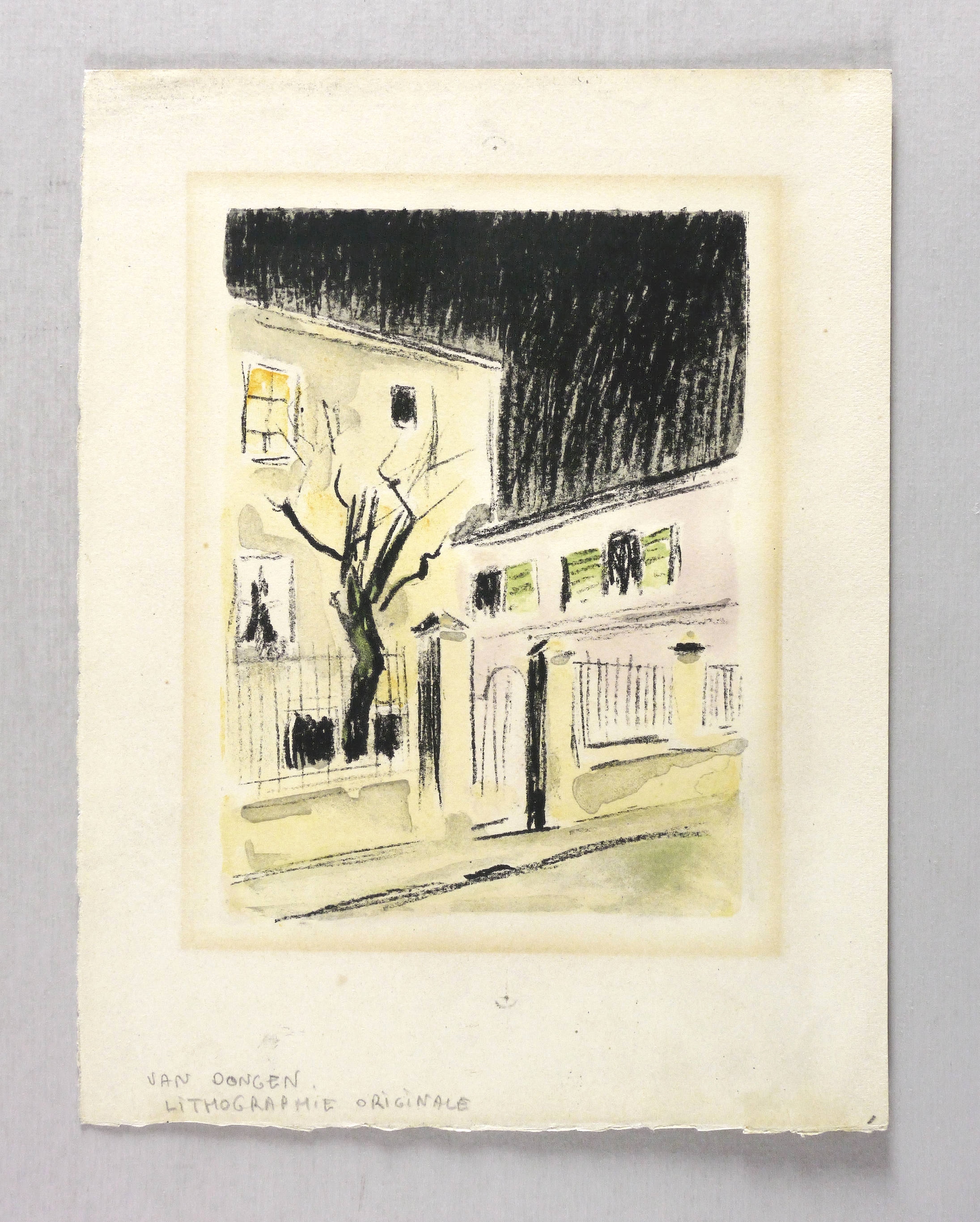 Juffermans B 13. – Aus: Roland Dorgelès, Au beau temps de la Butte (Paris: Nouvelle Librairie de France 1949). – Nicht signiert. Im unteren Blattrand in Bleistift bezeichnet: ″VAN DONGEN / LITHOGRAPHIE ORIGINALE″. Wasserzeichen von Arches. – Blatt 20 der 20 ganzseitigen originalgrafischen Illustrationen von Kees van Dongen zu den Erinnerungen ″Au beau temps de la Butte″ von Roland Dorgelès (Paris: Nouvelle Librairie de France 1949). - Limitierte Auflage von 25 auf Arches gedruckten Exemplaren. - Sowohl der Text als auch die Bilder speisen sich aus Erinnerungen an das Bateau-Lavoir, den Freundeskreis um Pablo Picasso und das Leben auf dem Montmarte. – Papier durchgehend etwas gebräunt. Stärkerer Lichtrand um die Darstellung. Mäßig guter Zustand.