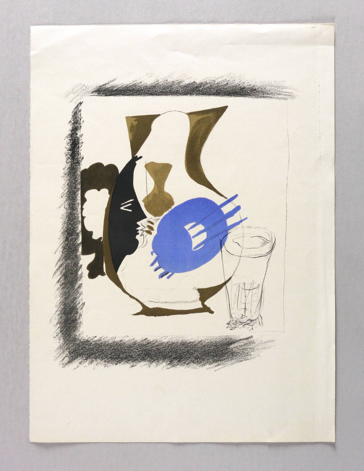 Georges Braque (1882 Argenteuil - 1963 Paris). Französischer Maler, Grafiker und Bildhauer. Bedeutender Vertreter der Klassischen Moderne in Frankreich, mit Pablo Picasso Mitbegründer des Kubismus. Ab 1899 Lehre als Dekorationsmaler in Le Havre. Daneben Malunterricht in der Abendklasse der École des Beaux-Arts. 1902-04 Besuch der Académie Humbert in Paris. 1906 durch die Ausstellung im XXII. Salon des Indépendants Bekanntschaft mit Henri Matisse und André Derain, Beginn seiner fauvistische Phase. Entwickelte in den folgenden Jahren unter dem Einfluss von Paul Cézanne seinen kubistischen Stil. 1907 Bekanntschaft mit Pablo Picasso, mit dem er bis 1914 einen intensiven Austausch pflegte. Tätige Unterstützung erfuhr er durch den Kunsthändler Daniel-Henry Kahnweiler. 1914/15 als Soldat im 1. Weltkrieg schwer verwundet. 1917 Rückkehr nach Paris, wo er mit Juan Gris und Henri Laurens verkehrte. Ab 1947 druckte Fernand Mourlot seine Lithografien. 1953 Auftrag zu einem Deckengemälde für die Etruskische Galerie im Louvre. Teilnahme an der documenta 1 (1955), II (1959) und III (1964).