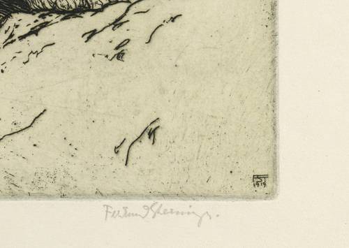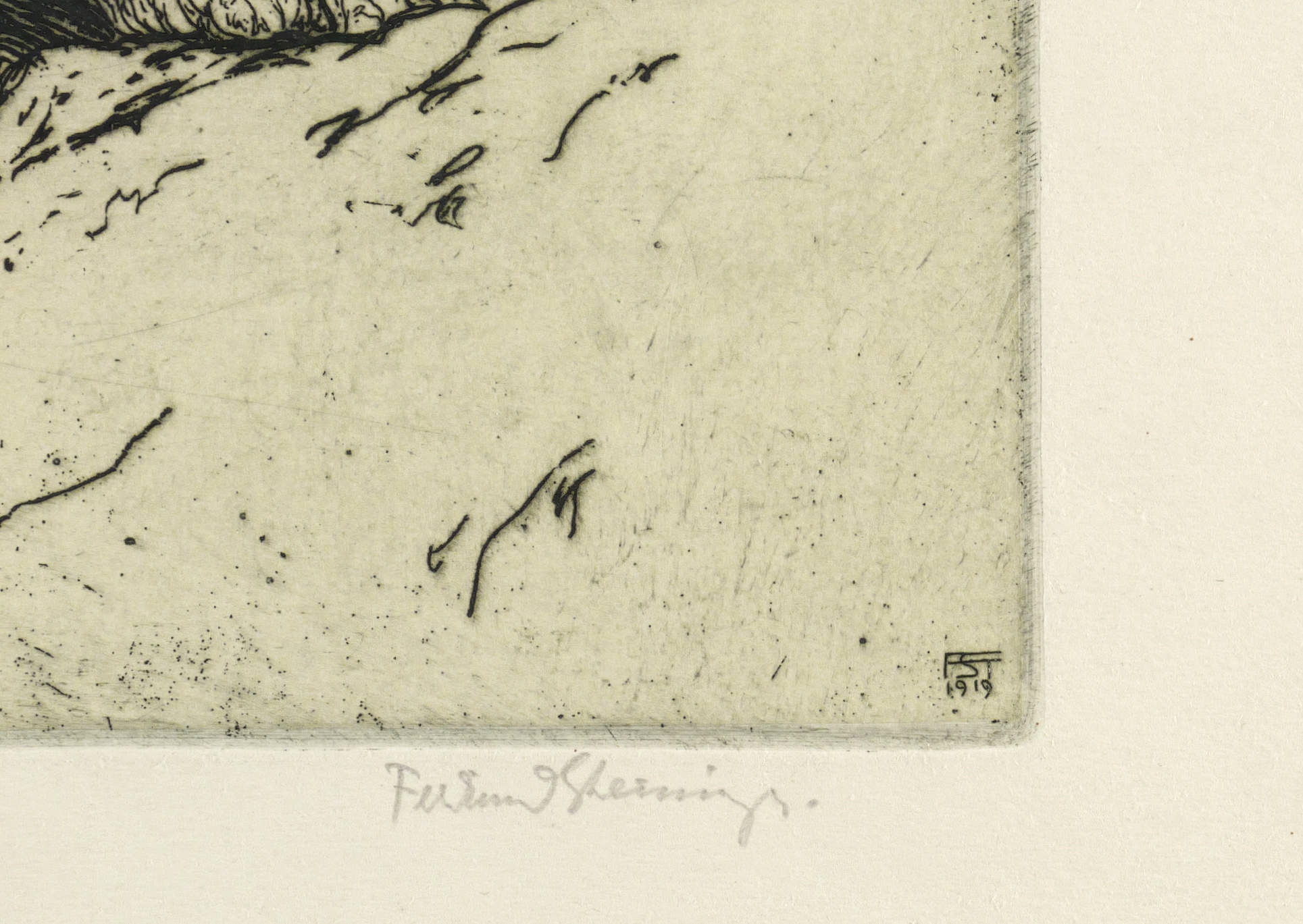 Rechts unten in Bleistift signiert: ″Ferdinand Steiniger″. In der Platte rechts unten Monogramm und Jahr. – Papier mit leichten Lagerspuren. Keine wirklichen Mängel. Guter Zustand.