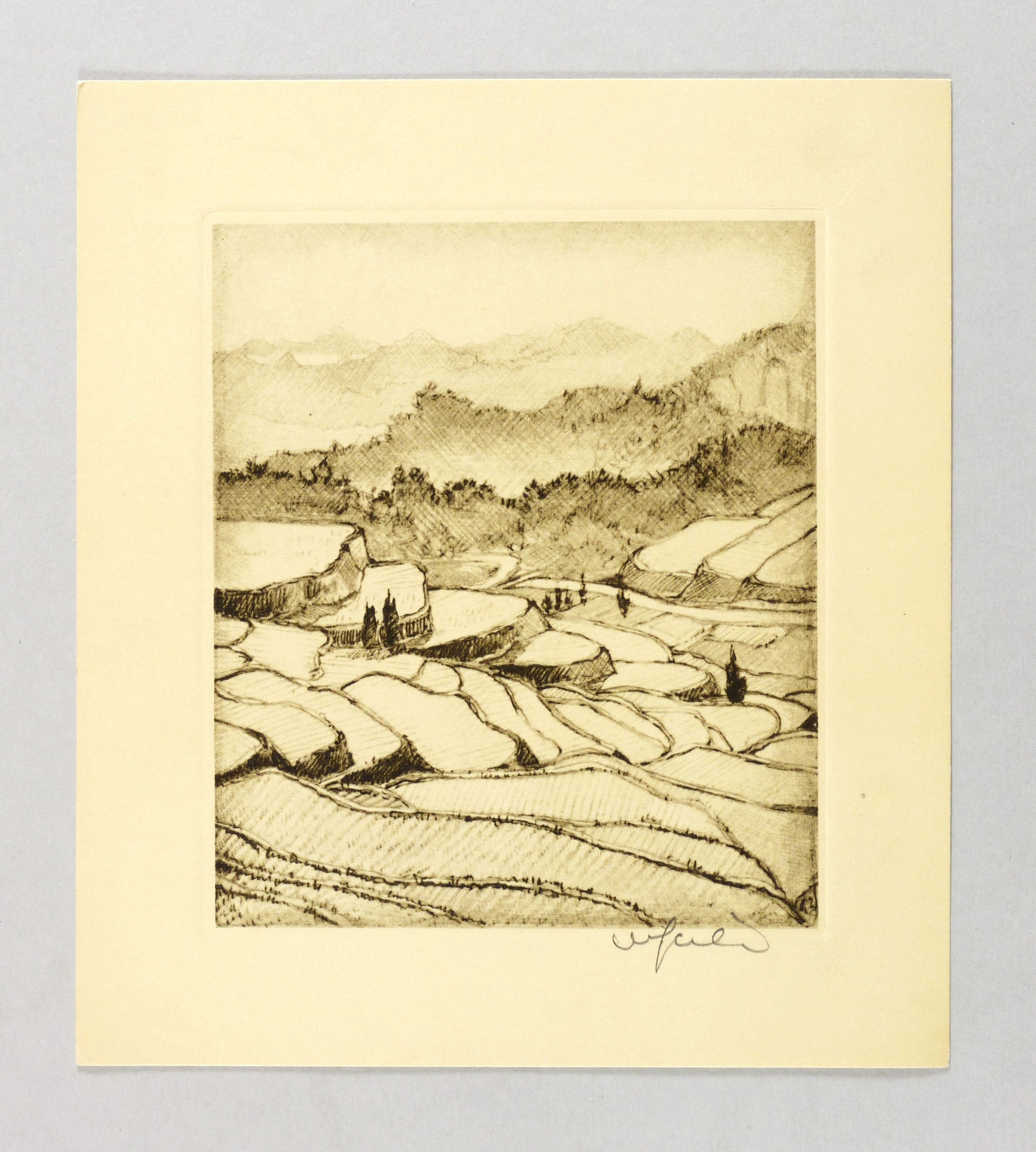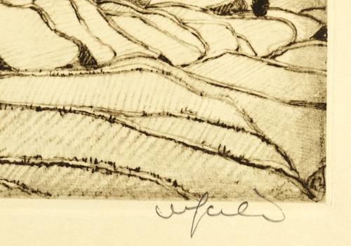 Um 1950. Radierung / Vernis mou, in Schwarzbraun, auf gelbem Velinkarton. – Originale Künstlergrafik, von Willy Seiler. – 13,8 x 11,8 cm (Darstellung), 14,4 x 12,2 cm (Platte), 20 x 17 cm (Blatt).