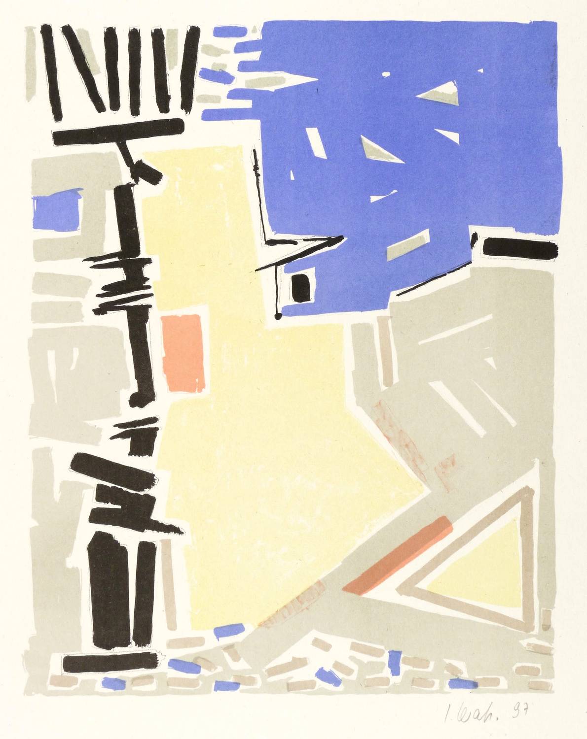 1997. Farblithografie / Pinsellithografie, in 5 Farben, auf festem hellem Velinkarton. – Originale Künstlergrafik, von Ingo Kraft. – 33,7 x 26,5 cm (Darstellung / Druckbild), 45 x 35 cm (Blatt).