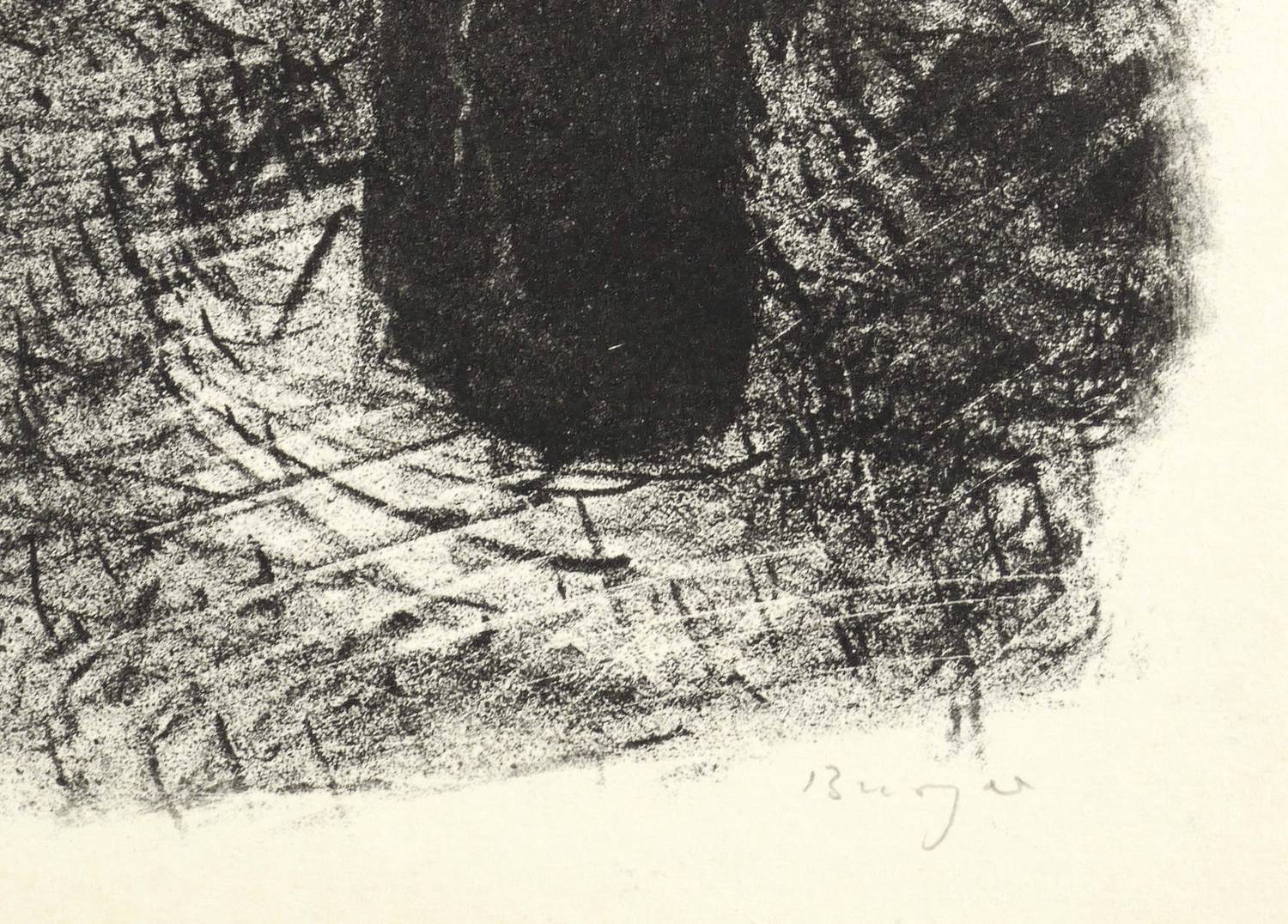 1974. Lithografie / Kreide- & Pinsellithografie, partiell gespritzt, in Schwarz, auf hellgelbem Velinkarton. – Von Dietrich Burger. – 31,5 x 44,8 cm (Darstellung), 34 x 48 cm (Blatt).