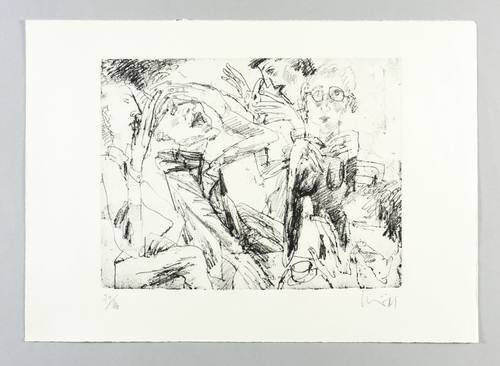 1990. Radierung / Vernis mou, in Schwarz, auf hellem Velin. – Von Peter Schnürpel. – Auflage Exemplar Nr. 79/100. – 24,6 x 32,0 cm (Darstellung / Platte), 35 x 48 cm (Blatt).