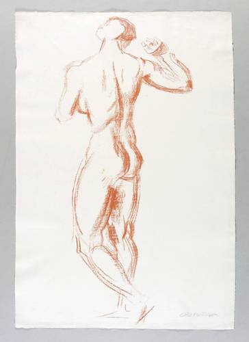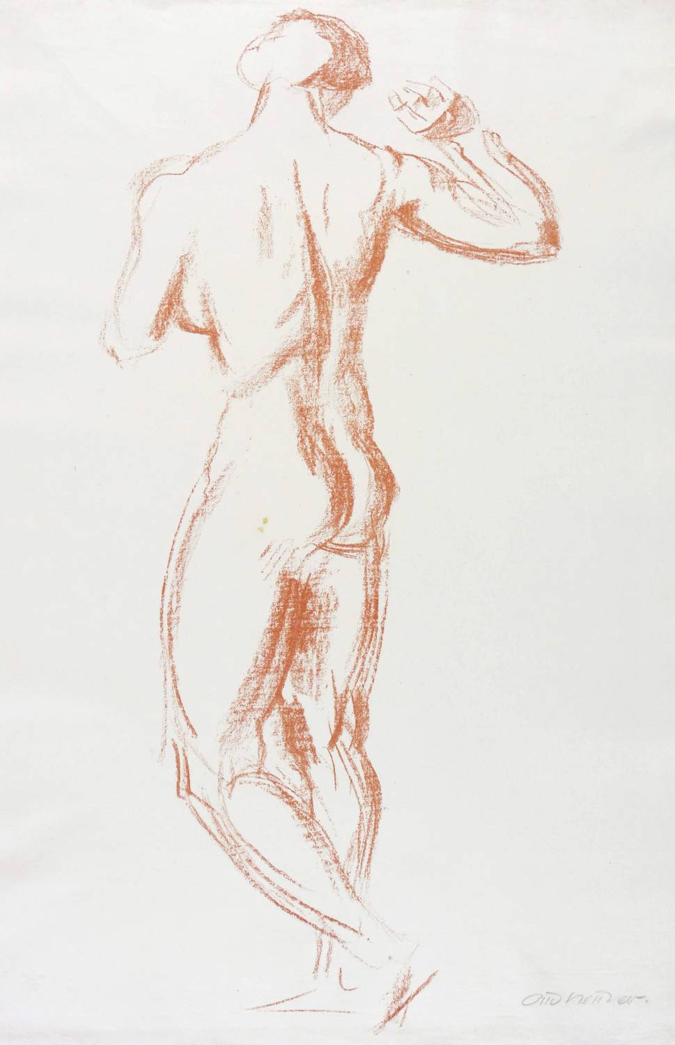 1915-1920. Lithografie / Kreidelithografie, in Rötelton, auf feinem hellem Hahnemühle-Bütten. – Originale Künstlergrafik, von Otto Hettner. – 64,2 x 29,4 cm (Darstellung / Druckbild), 66 x 46 cm (Blatt).