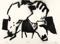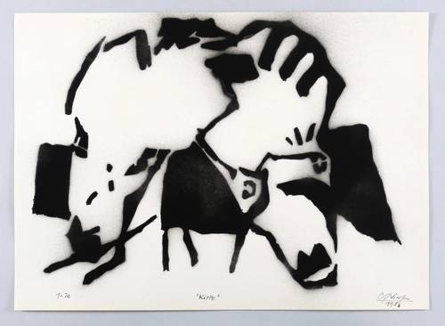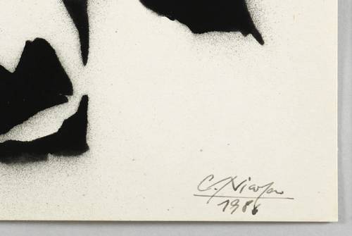 1986. Schablonendruck / Pochoir, in Schwarz, auf hellgelbem Velin. – Originale Künstlergrafik, von Carsten Nicolai. – Auflage Exemplar Nr. 1/20. – 27,0 x 36,7 cm (Darstellung / Druckbild), 29,5 x 41 cm (Blatt).