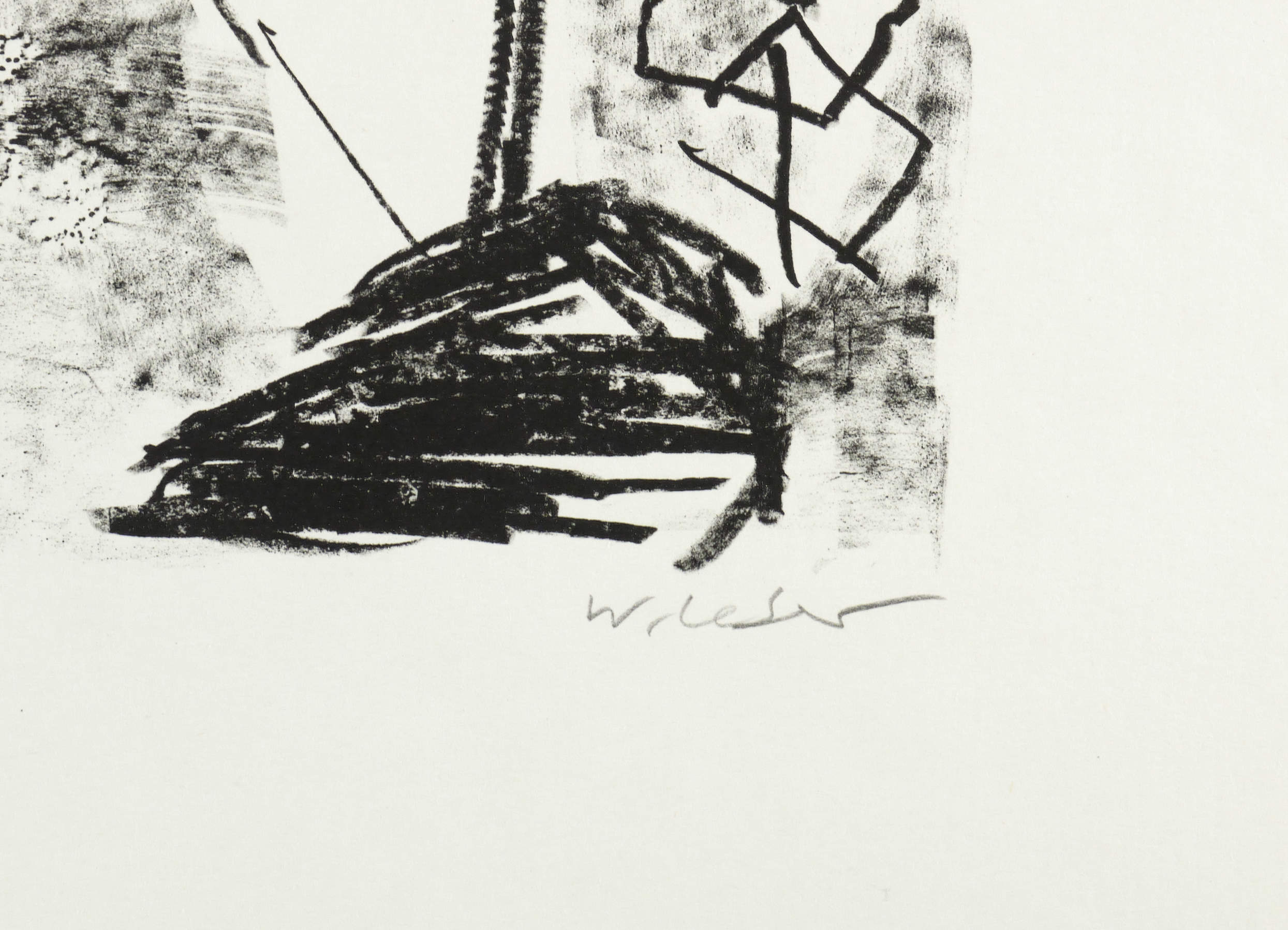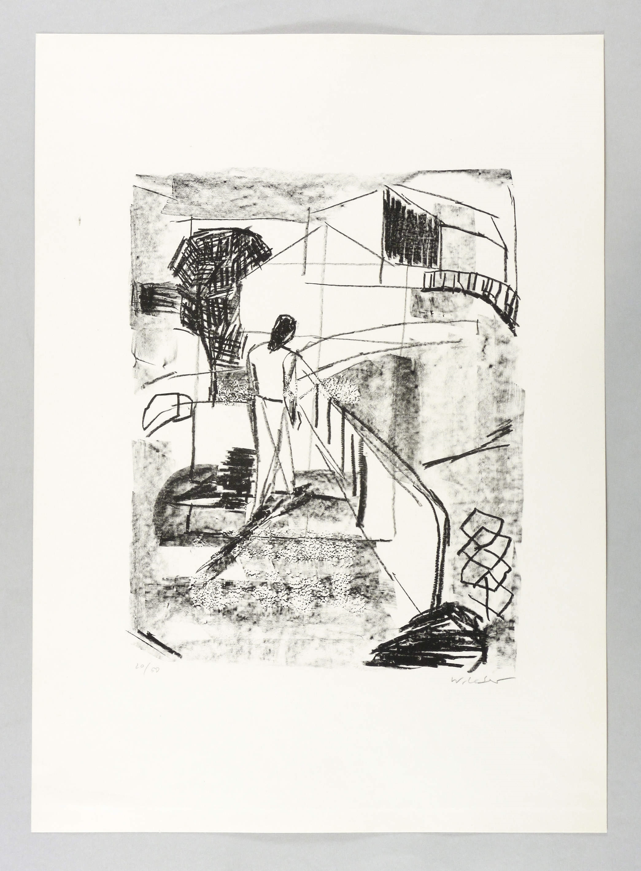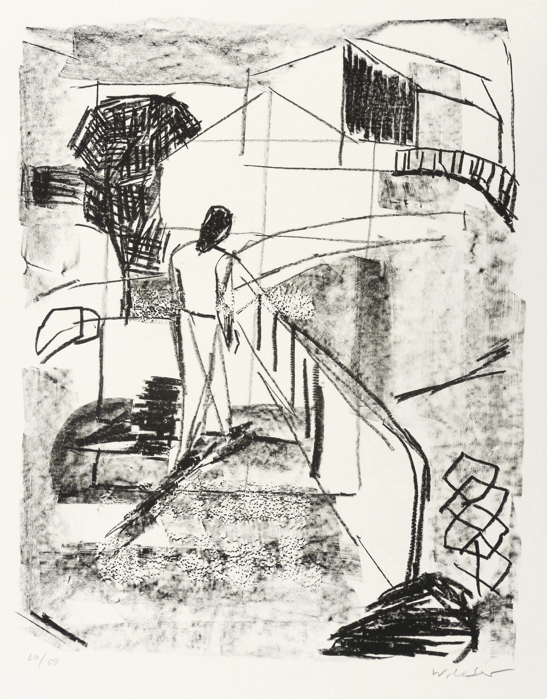 Um 1980. Lithografie / Kreidelithografie, in Schwarz, auf hellem Velin. – Originale Künstlergrafik, von Wolfgang Leber. – Auflage Exemplar Nr. 20/50. – 30,8 x 24,5 cm (Darstellung / Druckbild), 49 x 35 cm (Blatt).