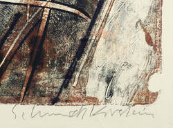 Rechts unten in Bleistift signiert: ″Schmidt Kirstein″. Links Datum: ″21. V. 56″. Wasserzeichen der Hahnemühle. – Leichte Altersspuren. Im oberen Rand rechts nach vorn durchschlagende Reste einer Klebemontierung. Insgesamt mäßig guter Zustand.