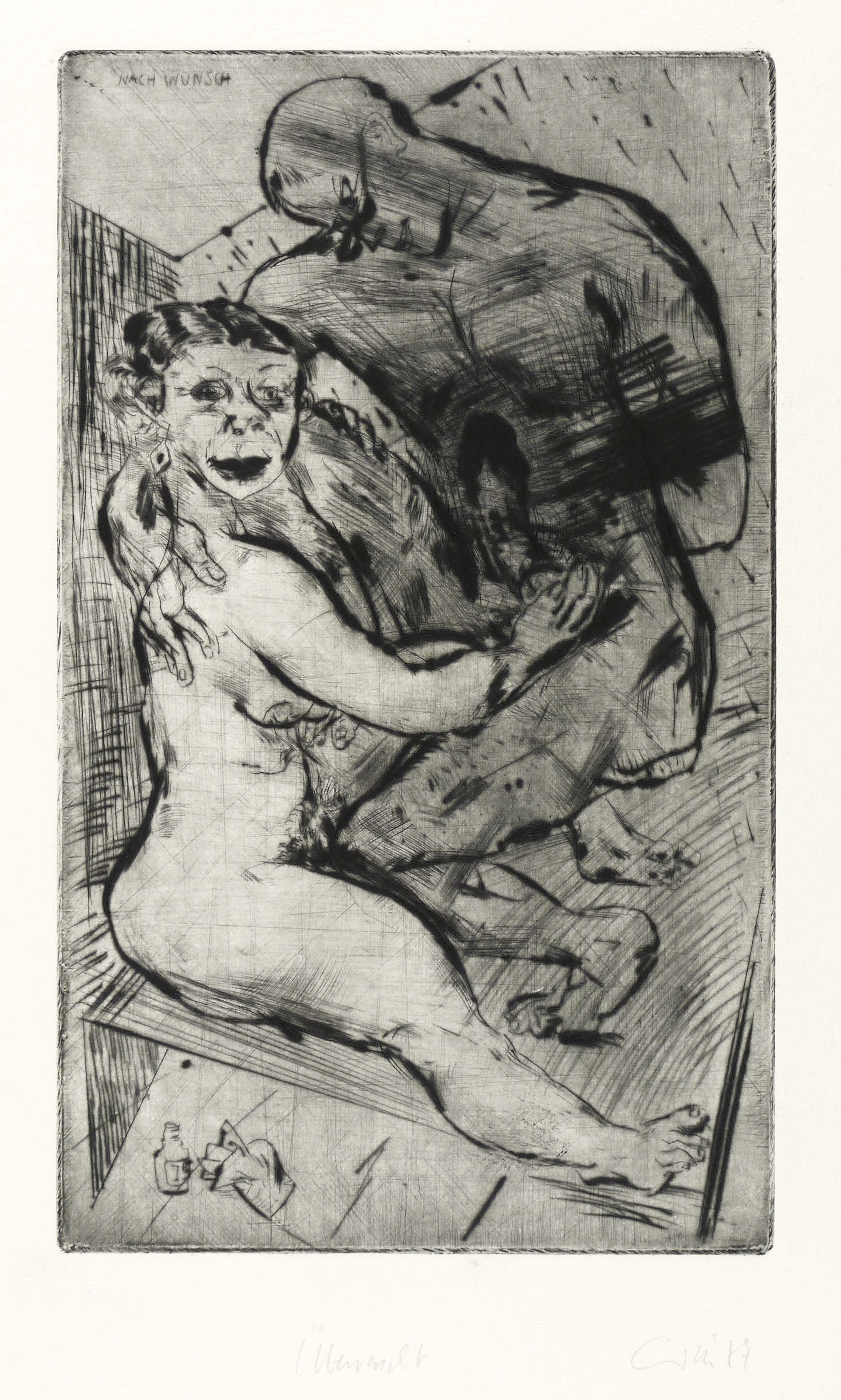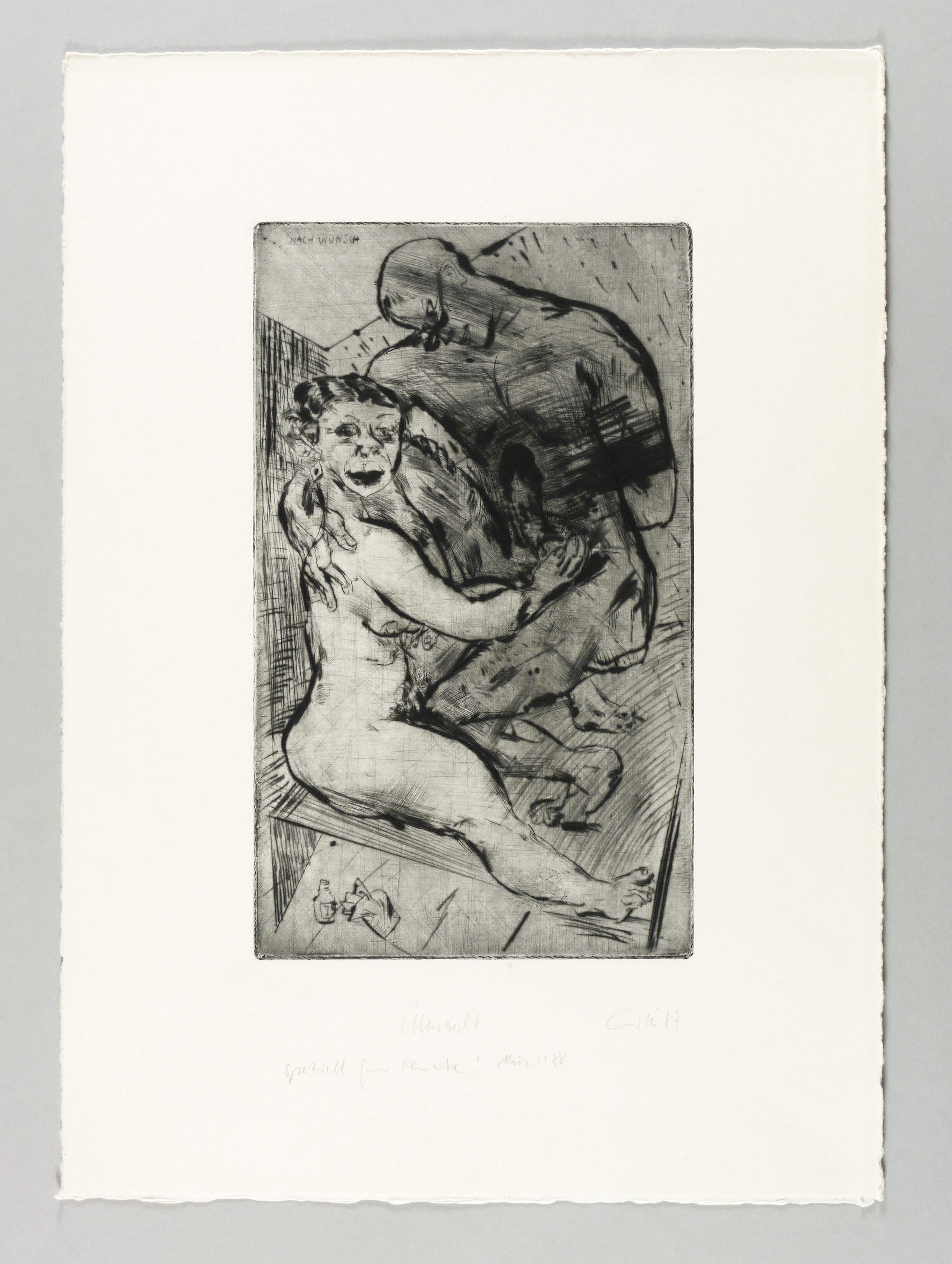 Rechts unten in Bleistift signiert und datiert. Dazu Titel und Auflagenbezeichnung. In der Platte links oben bezeichnet: ″Nach Wunsch″. – Tadellos guter Zustand.