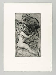 1987. Radierung / Kaltnadel, mit Plattenton, in Schwarz, auf hellgelbem Büttenkarton. – Originale Künstlergrafik, von Sighard Gille. – Auflage Exemplar Nr. 13/15. – 31,0 x 18,5 cm (Darstellung / Platte), 48 x 34 cm (Blatt).