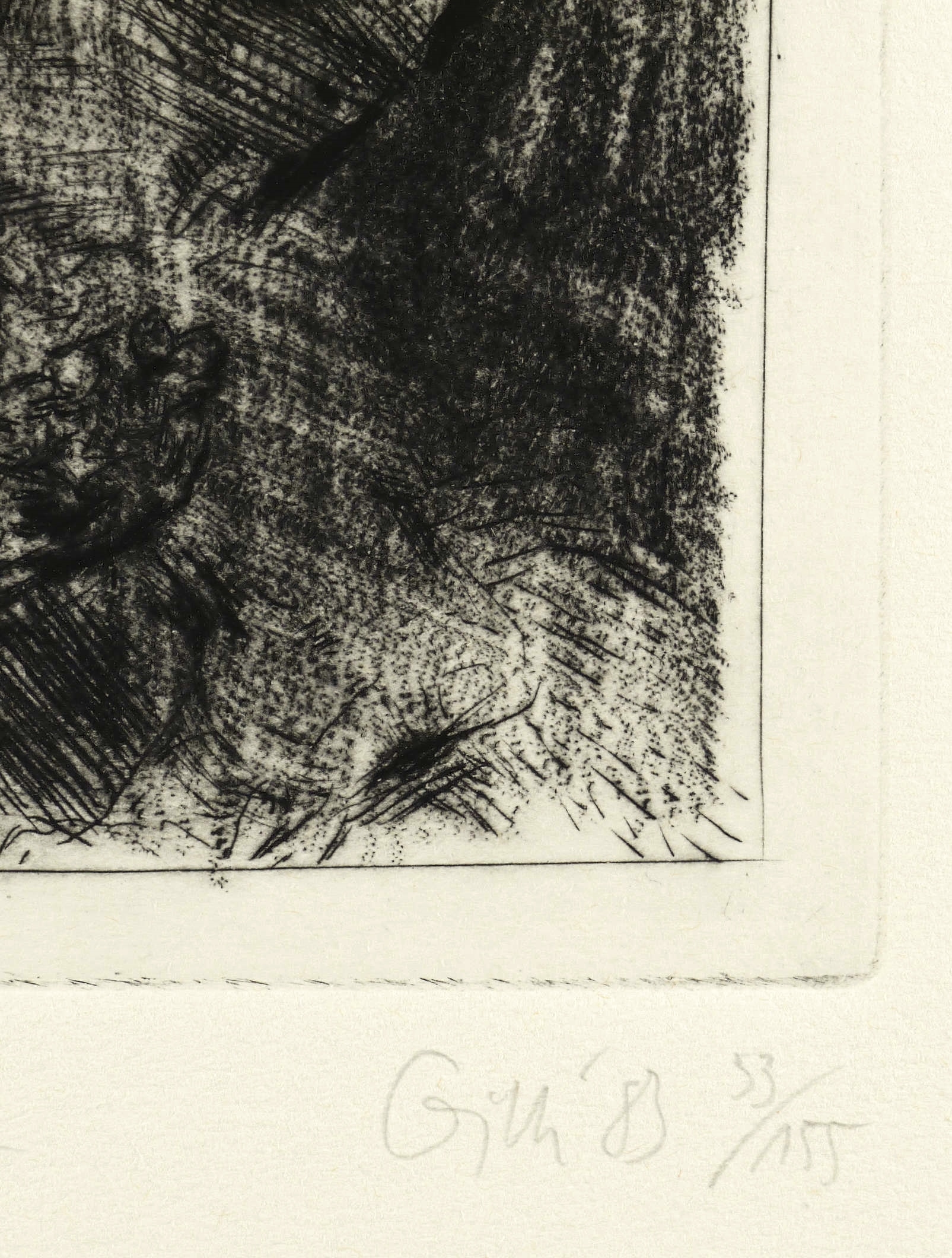 1983. Radierung / Kaltnadel & Roulette, in Schwarz, auf hellchamois Hahnemühle. – Originale Künstlergrafik, von Sighard Gille. – Auflage Exemplar Nr. 93/155. – 29,0 x 23,4 cm (Darstellung), 31,3 x 25,9 cm (Platte), 50 x 39 cm (Blatt).