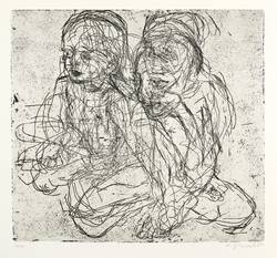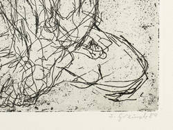 1984. Radierung / Strichätzung, mit Plattenton, in Schwarz, auf hellchamois Karton. – Originale Künstlergrafik, von Sabina Grzimek. – Auflage Exemplar Nr. 76/200. – 21,6 x 23,5 cm (Darstellung / Platte), 31 x 33 cm (Blatt).