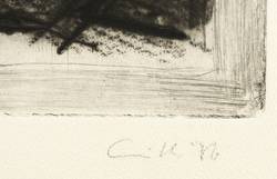 Aus: Sighard Gille, auge ufer hain. Sechs Radierungen, gewidmet Wassili Schukschin (Leipzig: Reclam 1987). – Außerhalb der Platte in Bleistift signiert und datiert unten rechts,mittig betitelt und unten links mit eigenhändiger Auflagenbezeichnung versehen. Am Blattrand links unten Wasserzeichen der Hahnemühle. – Guter Erhaltungszustand.