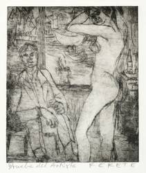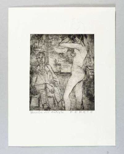 1968. Radierung / Kaltnadel, in Schwarz, auf weißem Werkdruckpapier. – Originale Künstlergrafik, von Esteban Fekete. – 16,0 x 13,5 cm (Darstellung / Platte), 29 x 22 cm (Blatt).