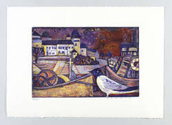 1972. Farbholzschnitt, in 5 Farben, auf weißem Velin. – Von Esteban Fekete. – Auflage Exemplar Nr. 86/100. – 20,0 x 30,3 cm (Darstellung / Druckstock), 32 x 44 cm (Blatt).