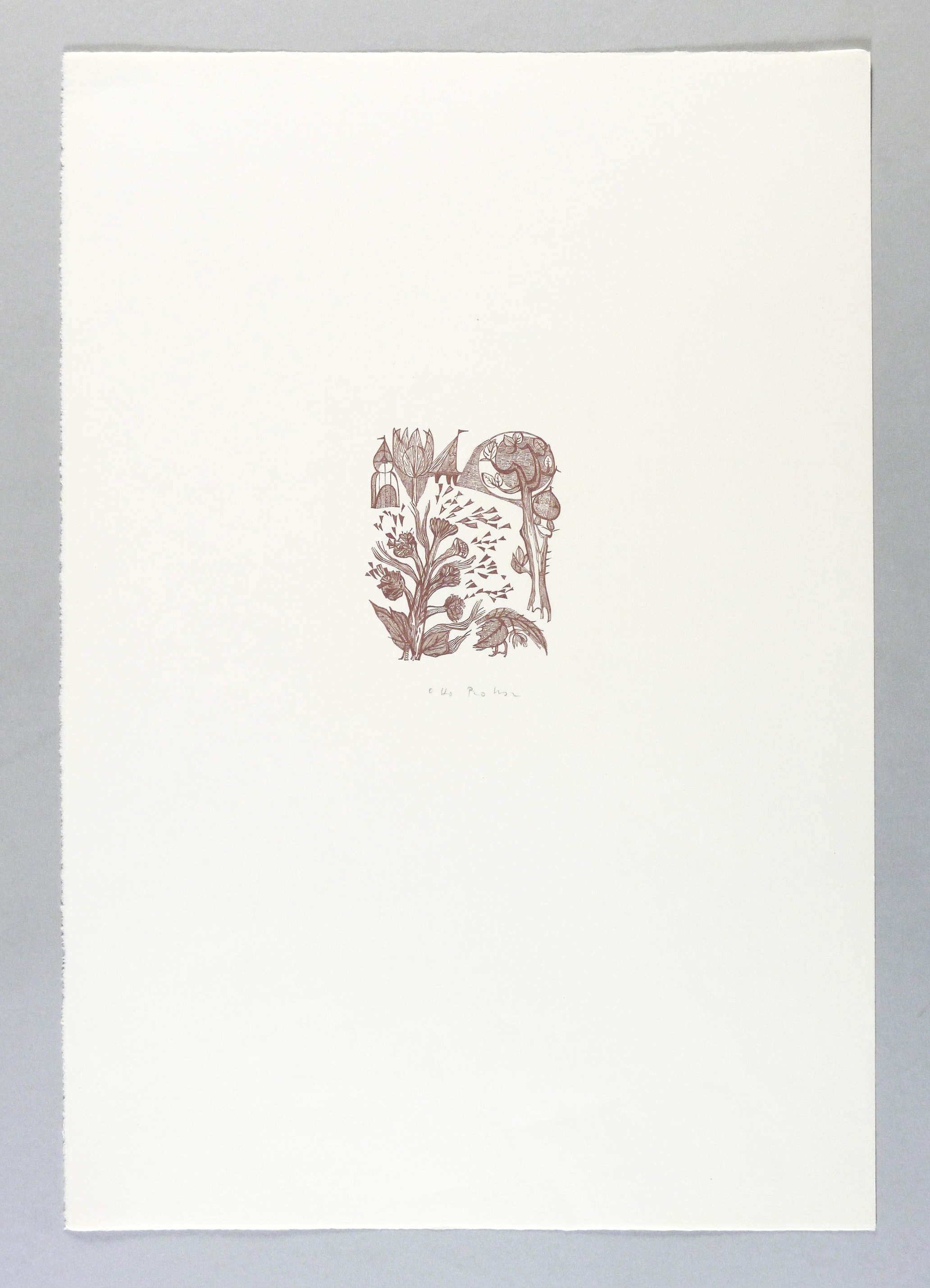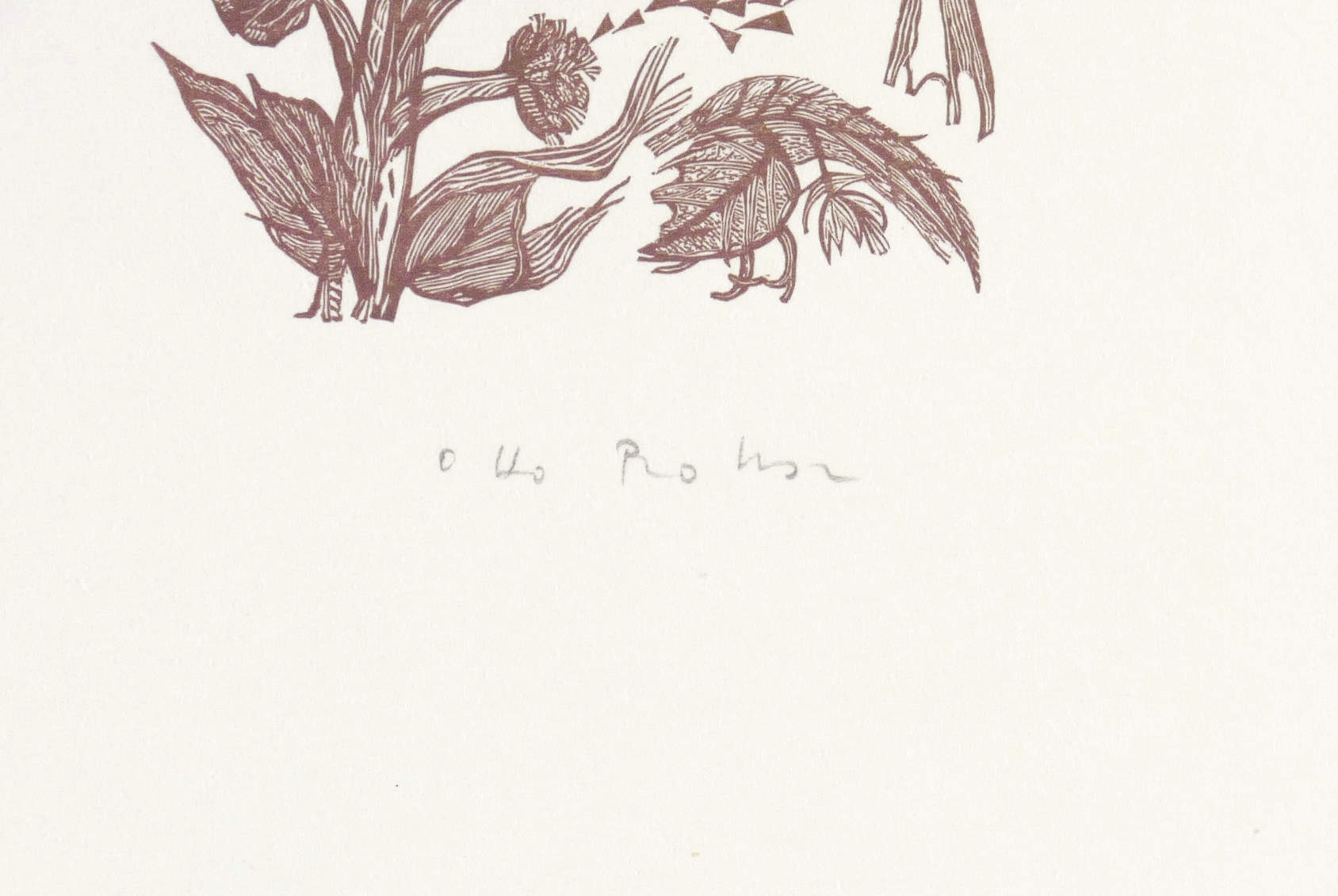 1954. Holzschnitt, in Braunviolett, auf hellem Velinkarton. – Originale Künstlergrafik, von Otto Rohse. – 9,6 x 7,9 cm (Darstellung / Druckbild), 48 x 33 cm (Blatt).