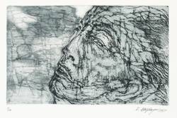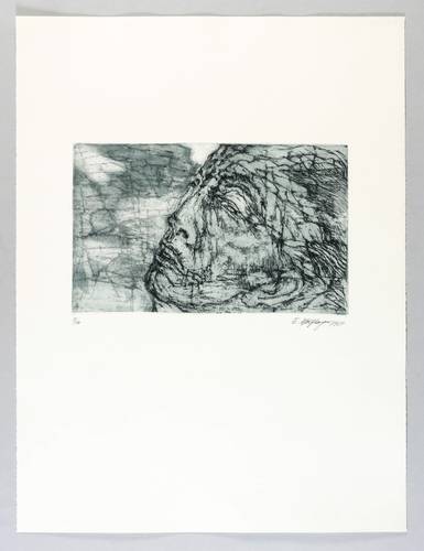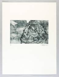 1964. Farbradierung / Aquatinta & Strichätzung, in Blaugrau & Schwarz, auf hellchamois Velinkarton. – Originale Künstlergrafik, von Ernst Wolfhagen. – Auflage Exemplar Nr. 5/10. – 18,6 x 30,4 cm (Darstellung / Platte), 57 x 43 cm (Blatt).