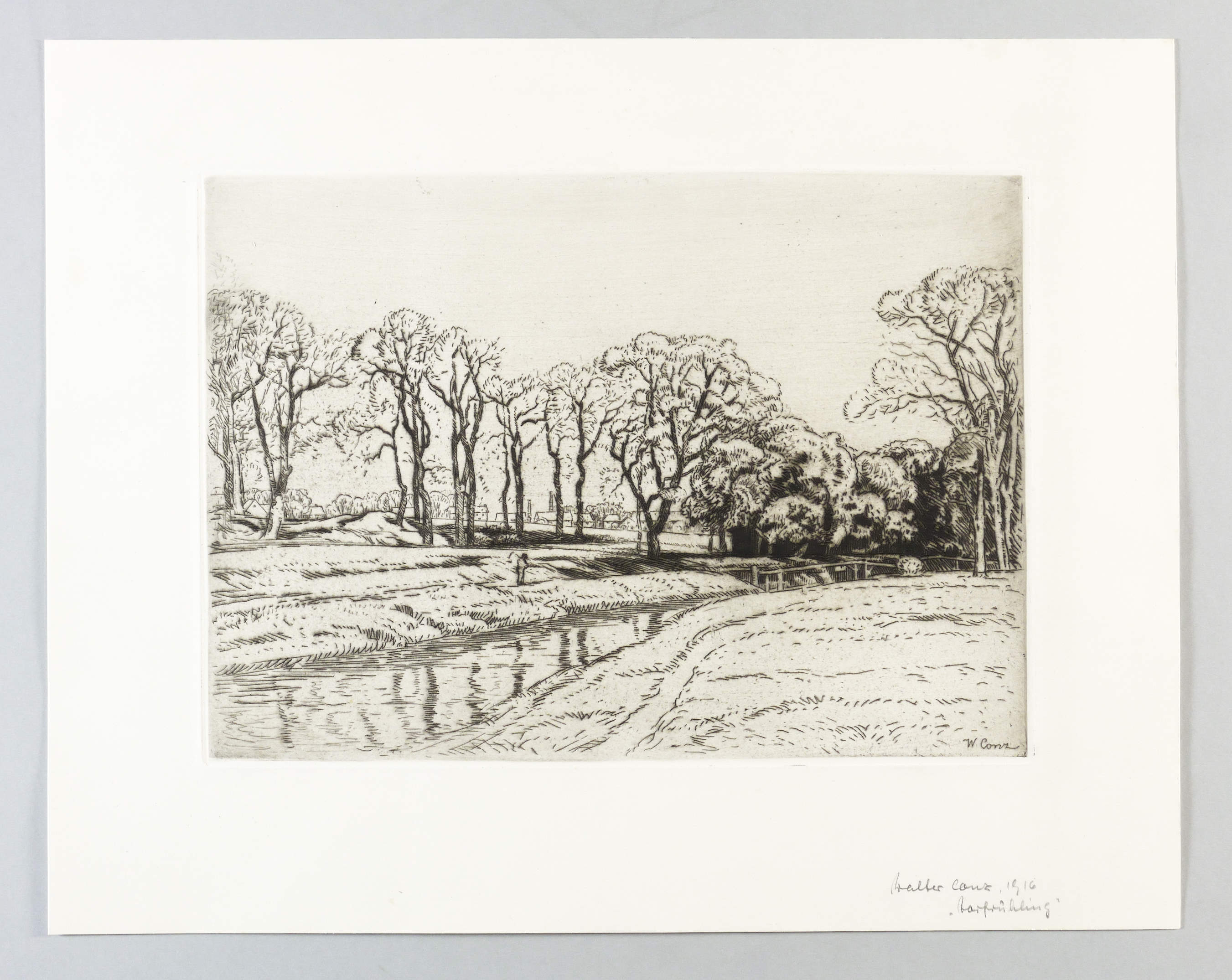 1916. Radierung / Strichätzung, mit Plattenton, in Schwarz, auf hellem Kupferdruckkarton. – Originale Künstlergrafik, von Walter Conz. – 28,6 x 40,0 cm (Darstellung), 29,2 x 40,5 cm (Platte), 44 x 55 cm (Blatt).