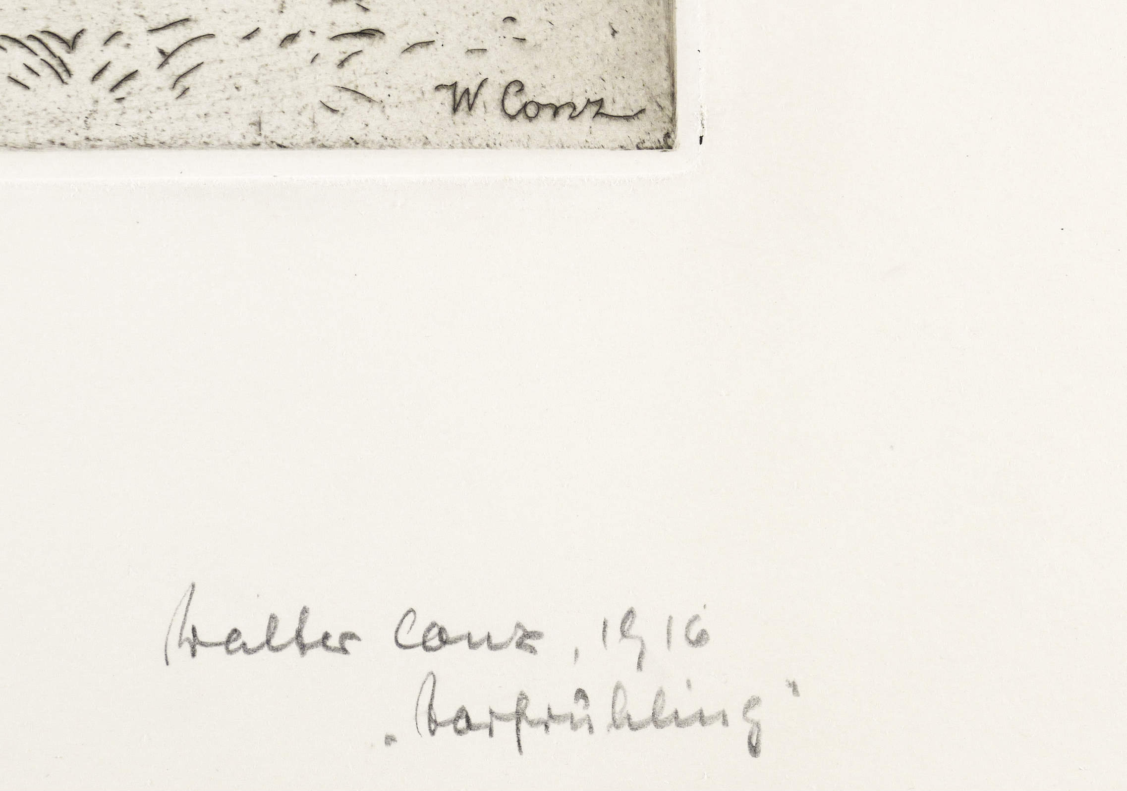 Aus: Freunde graphischer Kunst. Jahresgabe IV (Leipzig: 1916). – In der Platte rechts unten signiert: ″W. Conz″. Darunter in Bleistift alt, aber wohl von fremder Hand, bezeichnet. – Originalrandiges Exemplar. Tadellos. Sehr guter Zustand.