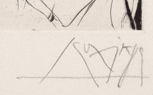 1989. Radierung / Strichätzung, in Schwarz, auf hellchamois Hahnemühle. – Originale Künstlergrafik, von Gregor Torsten Kozik. – Auflage Exemplar Nr. 86/100. – 19,4 x 26,1 cm (Darstellung / Platte), 40 x 54 cm (Blatt).
