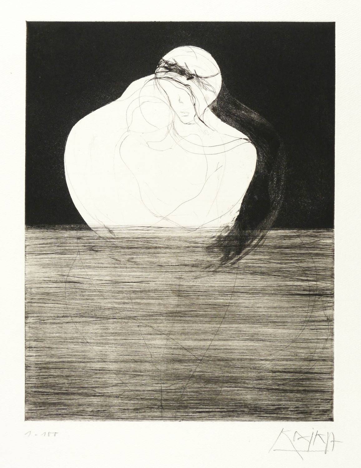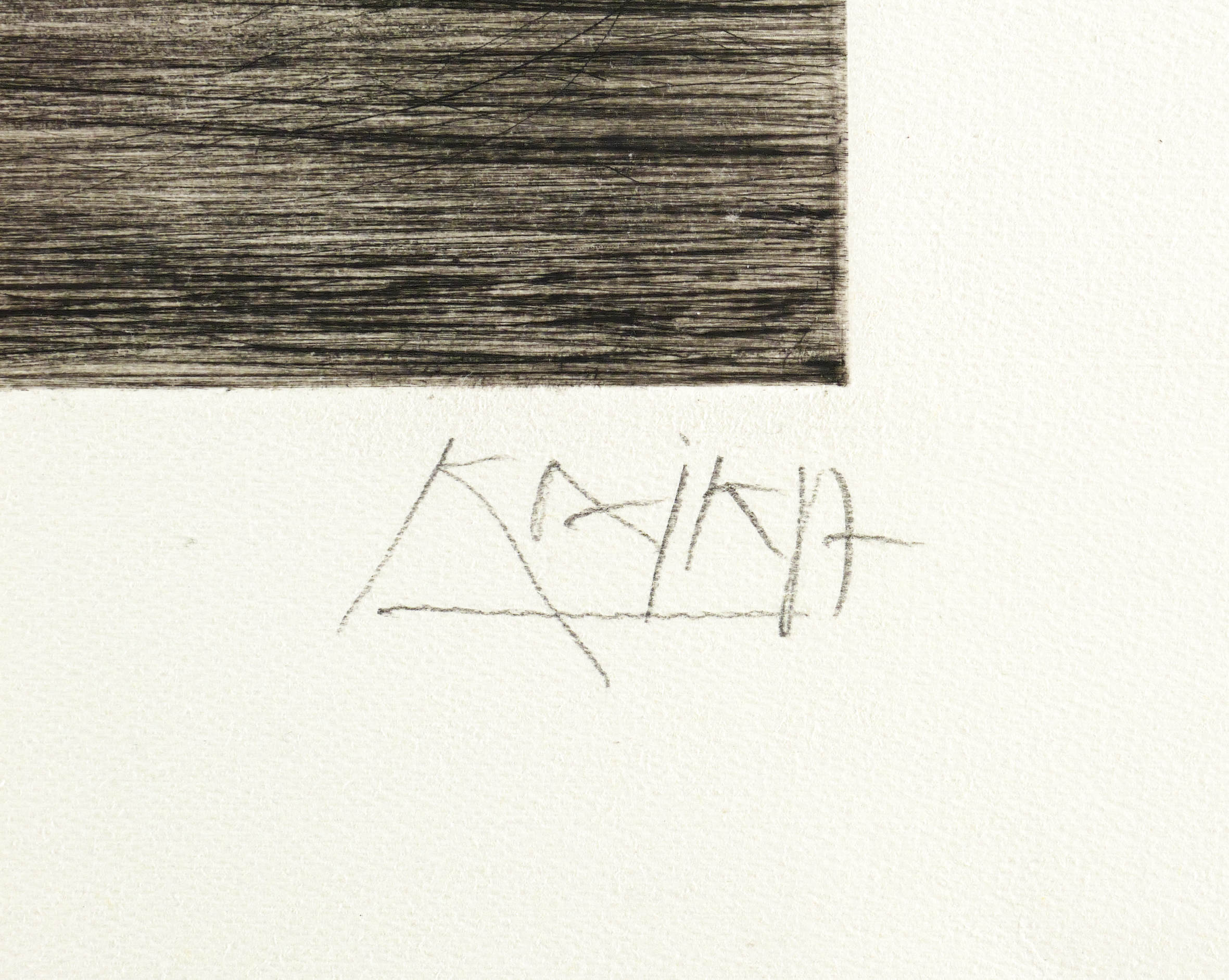 1987. Radierung / Aquatinta, Strichätzung & Kaltnadel, in Schwarz, auf weichem hellchamois Velin. – Von Gregor Torsten Kozik. – Auflage Exemplar Nr. 1/100. – 32,0 x 24,8 cm (Darstellung / Platte), 54 x 40 cm (Blatt).